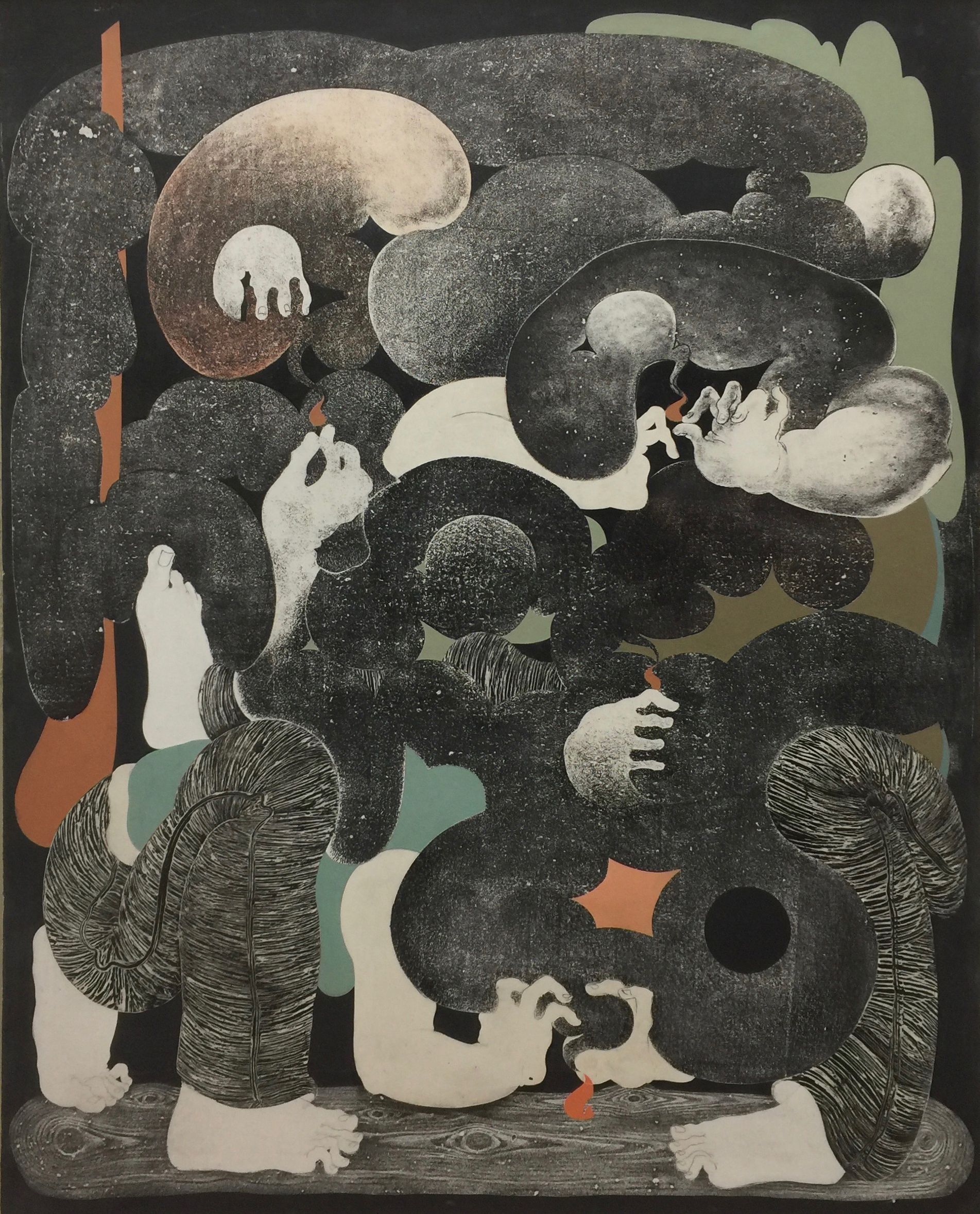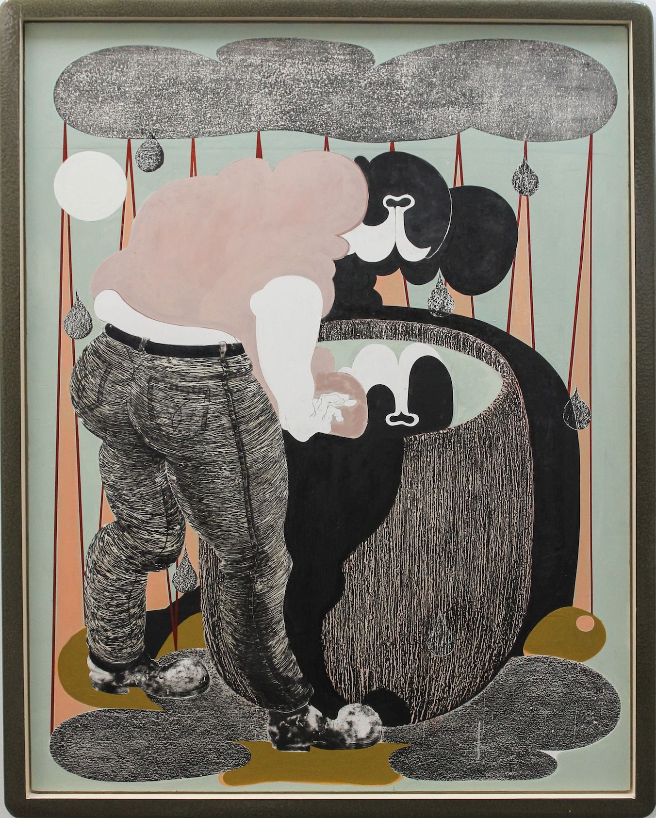 In his collage and camouflage-like compositions, in which subjects and objects, foreground and background seem to merge, Feuerstein invites us to participate in his games of interpretation, which inevitably immerse us in his intimate, bizarre and obstinate world.