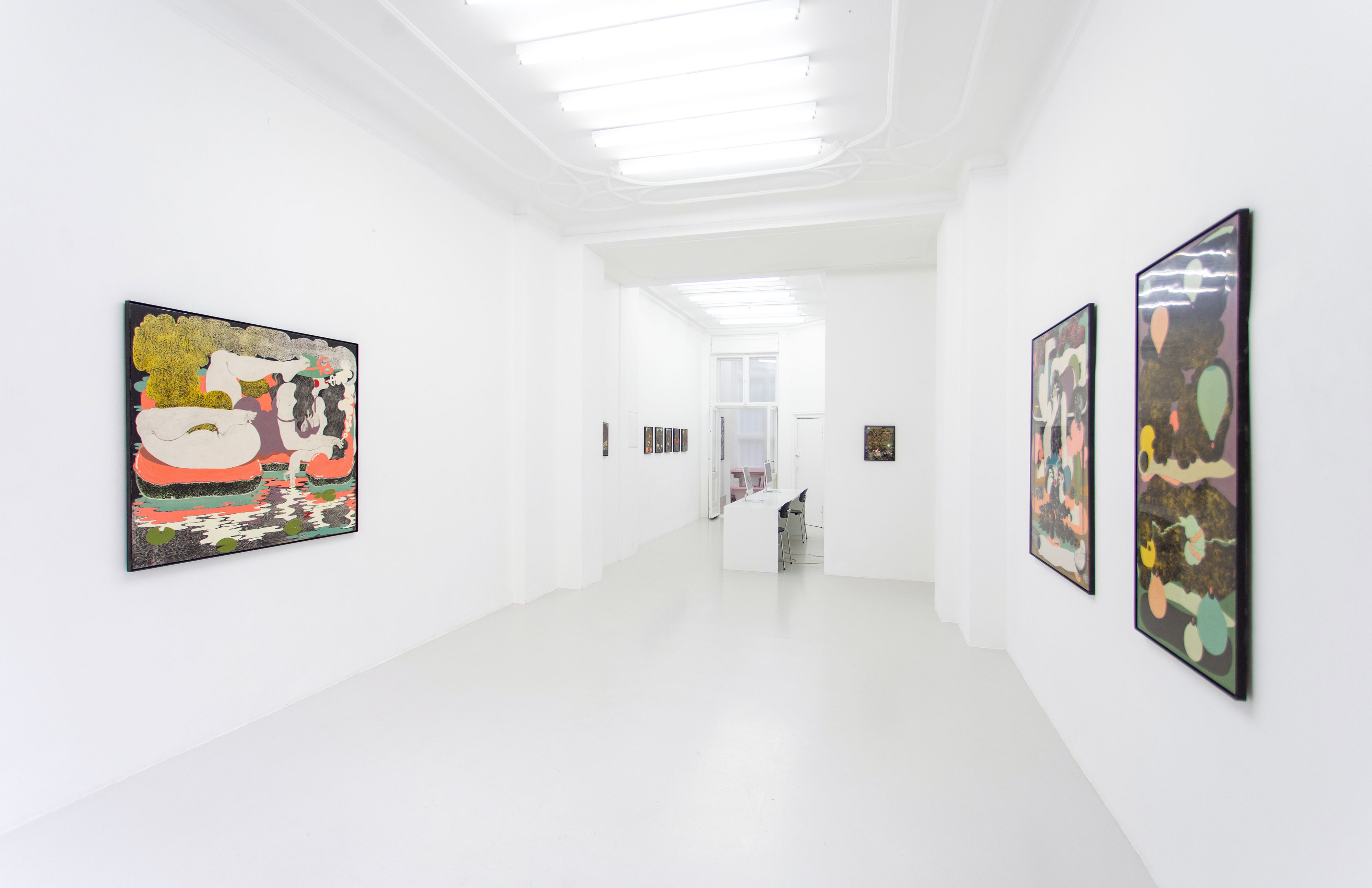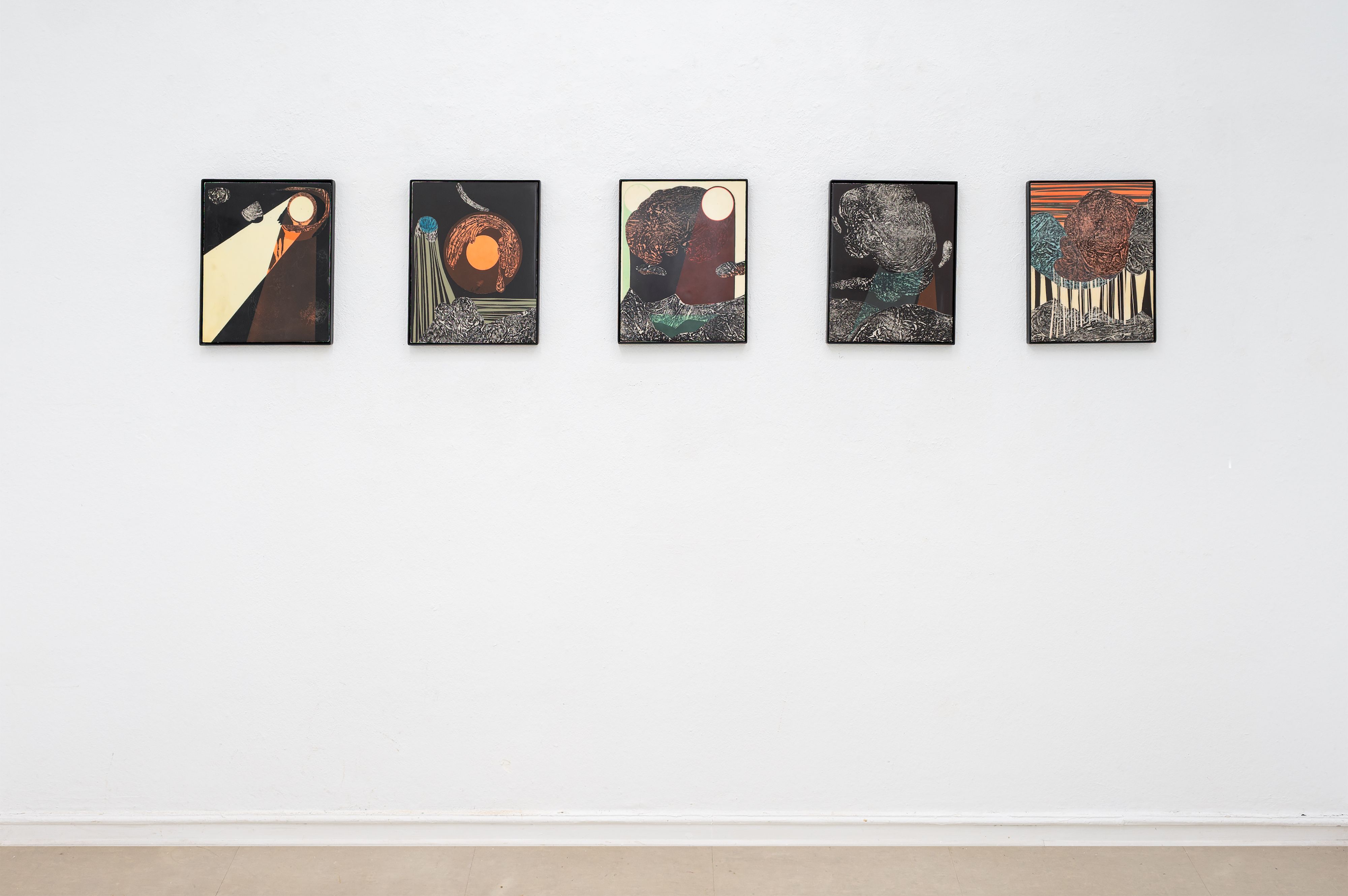 Alex Feuerstein works without any motivic model and allows randomly created forms and textures to influence the further steps in the creation process of his works. Thus the viewer's focus is lost in Feuerstein's seething textural landscapes.