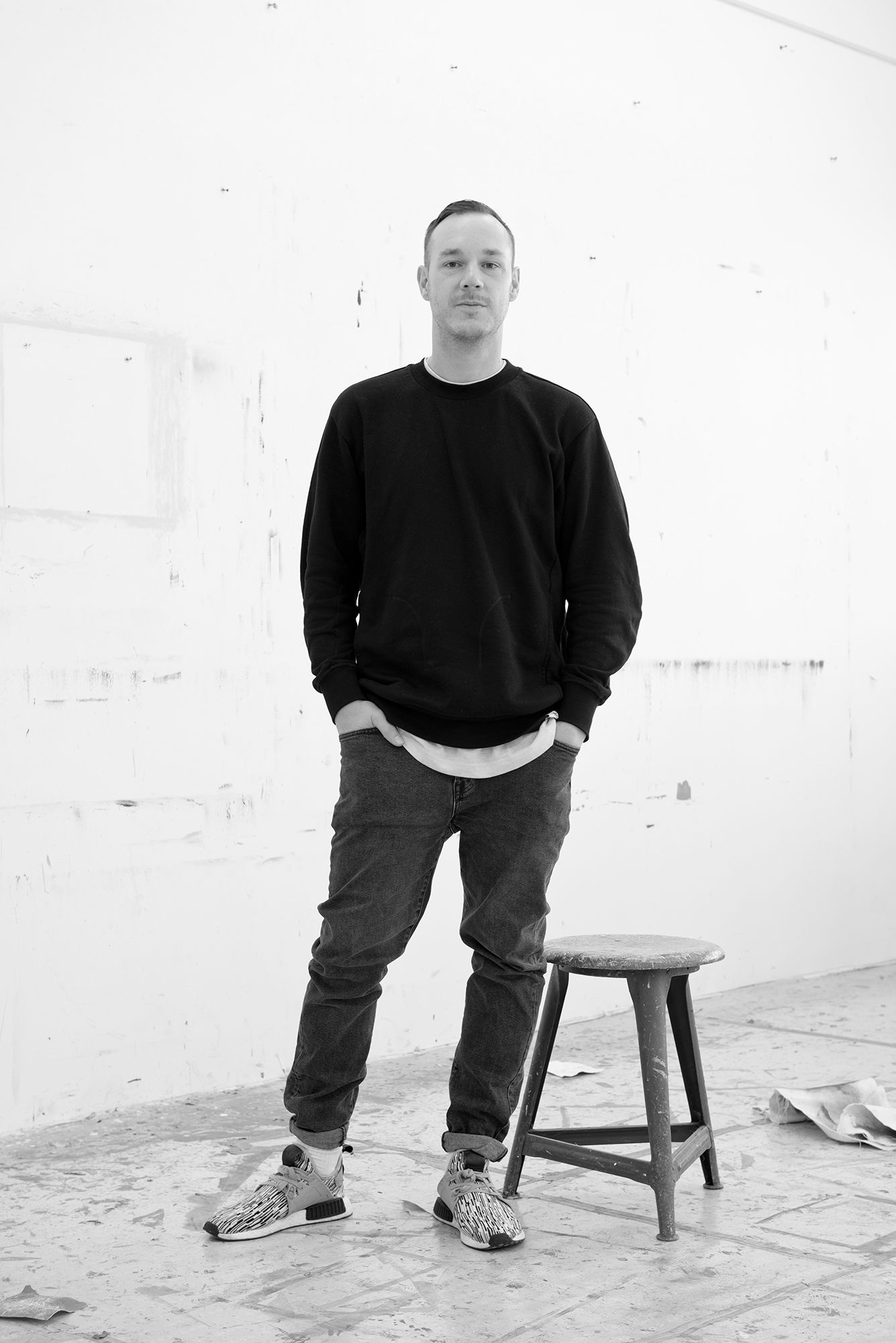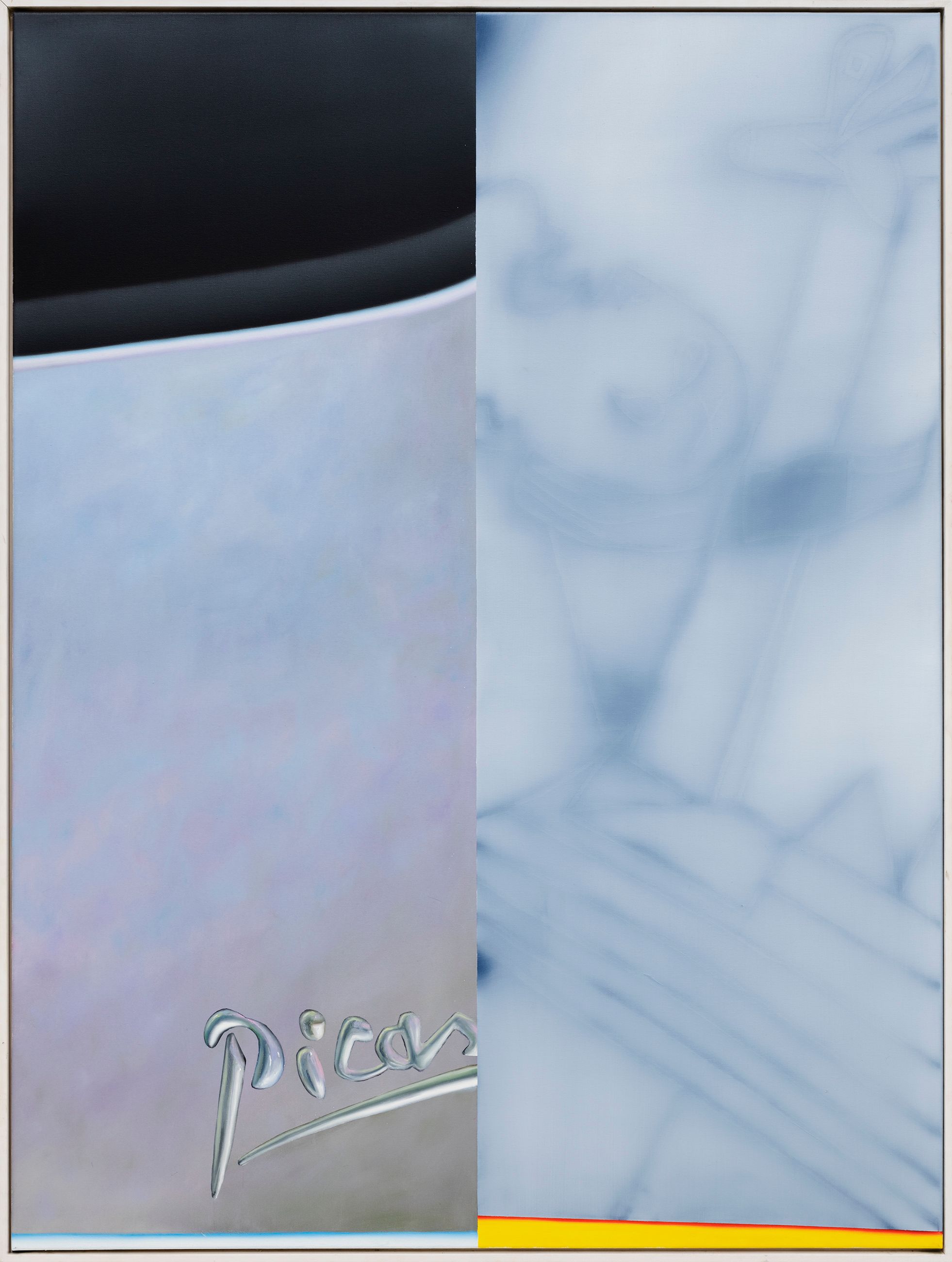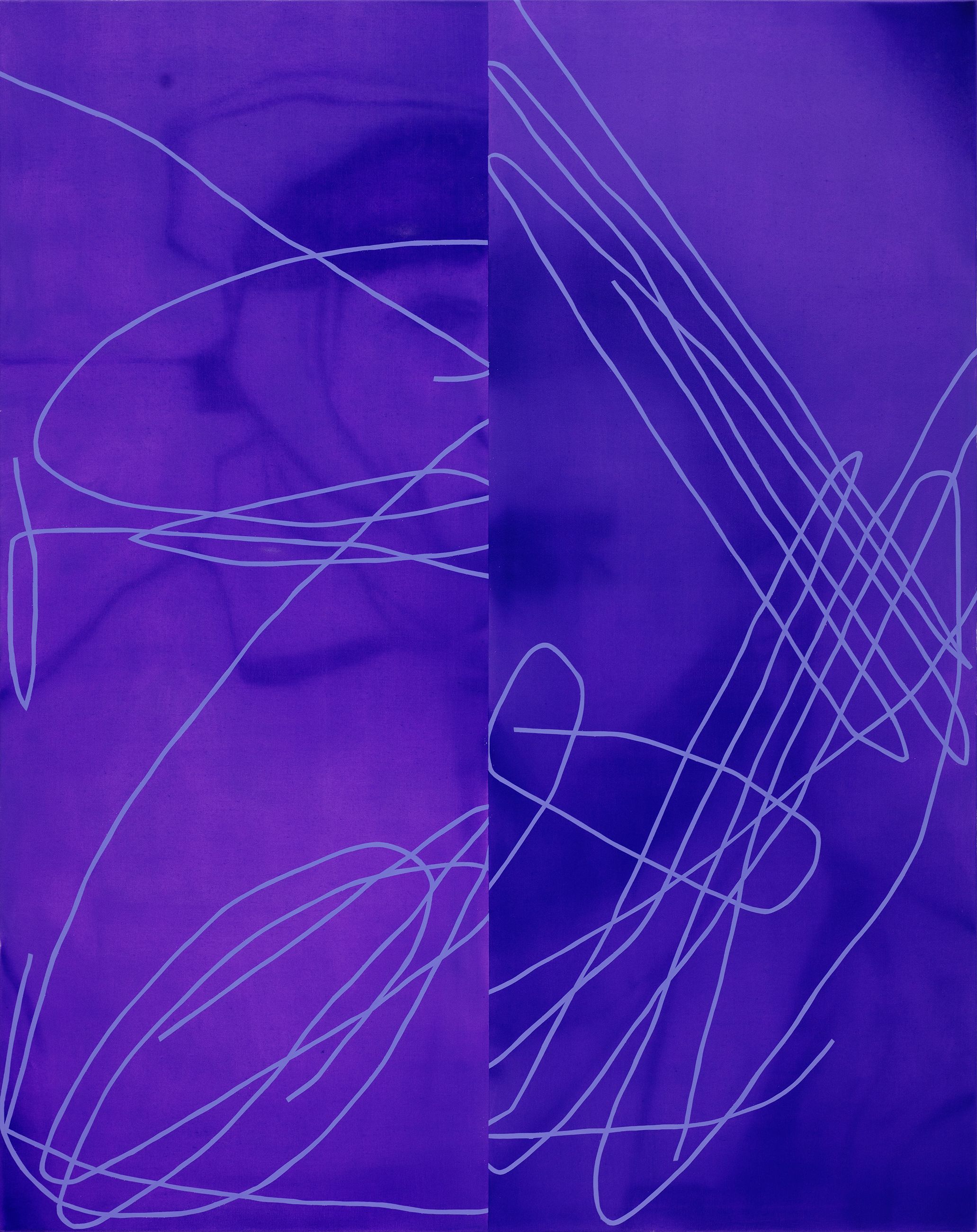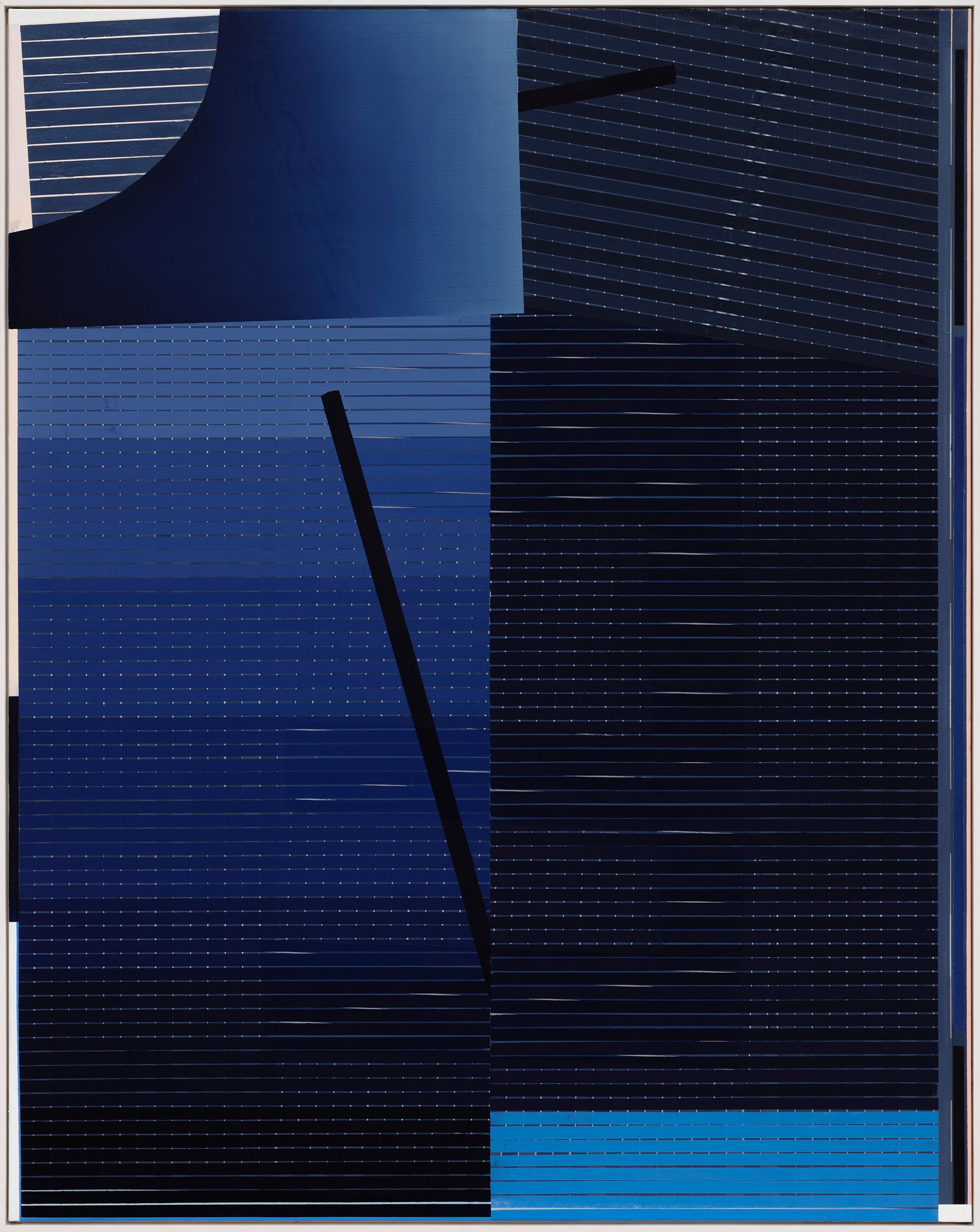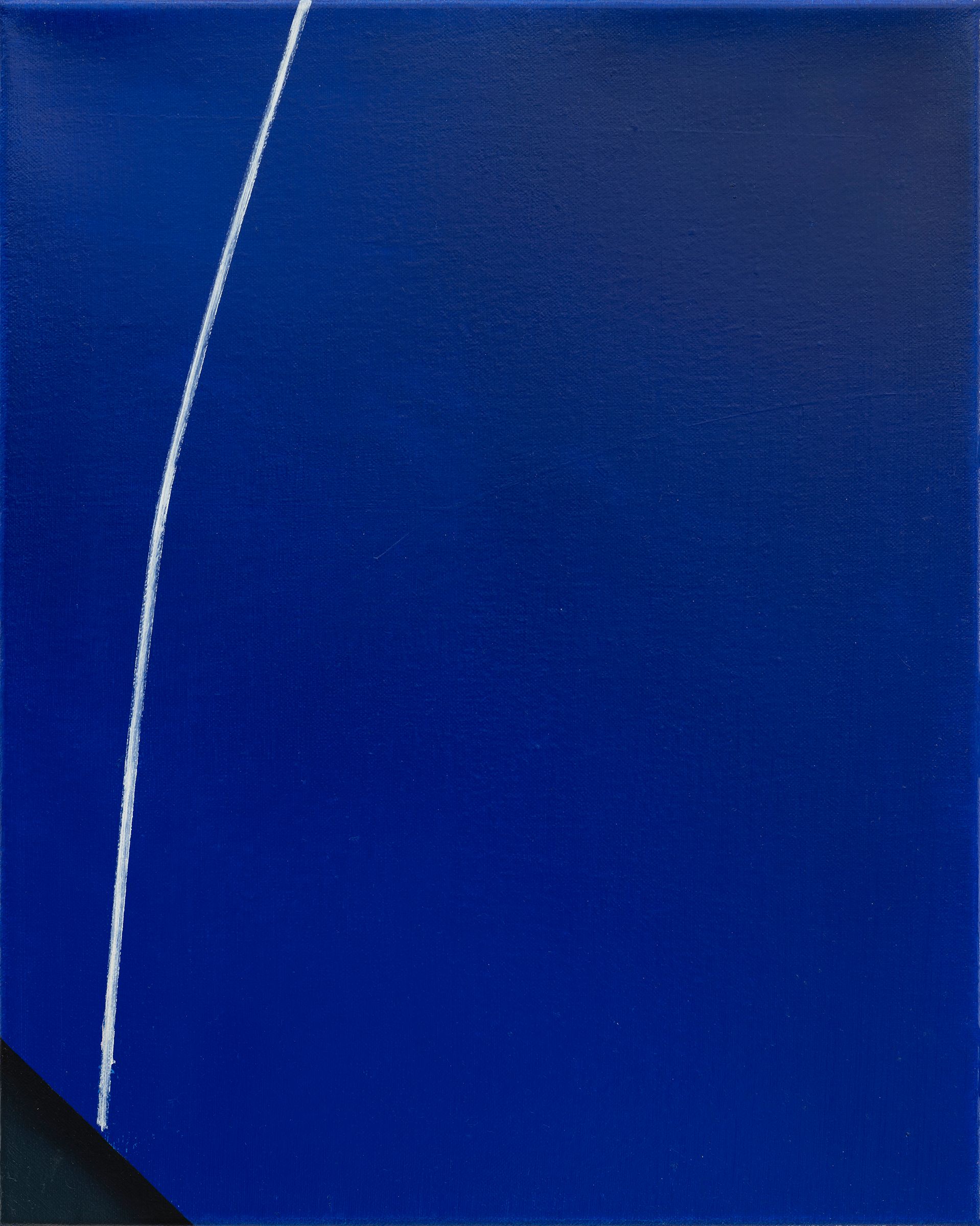 Enrico Bach's compositions are characterized by the division of the pictorial space into two halves. A picture-within-a-picture principle in which each side stands on its own and yet corresponds with the other half. The layered areas of color and pattern thus create the illusion of a more or less deep space. At the same time, Bach leaves behind the conventional compositional pattern of a centered motif: the picture's edge, ground and interfaces become depth-giving design levels.