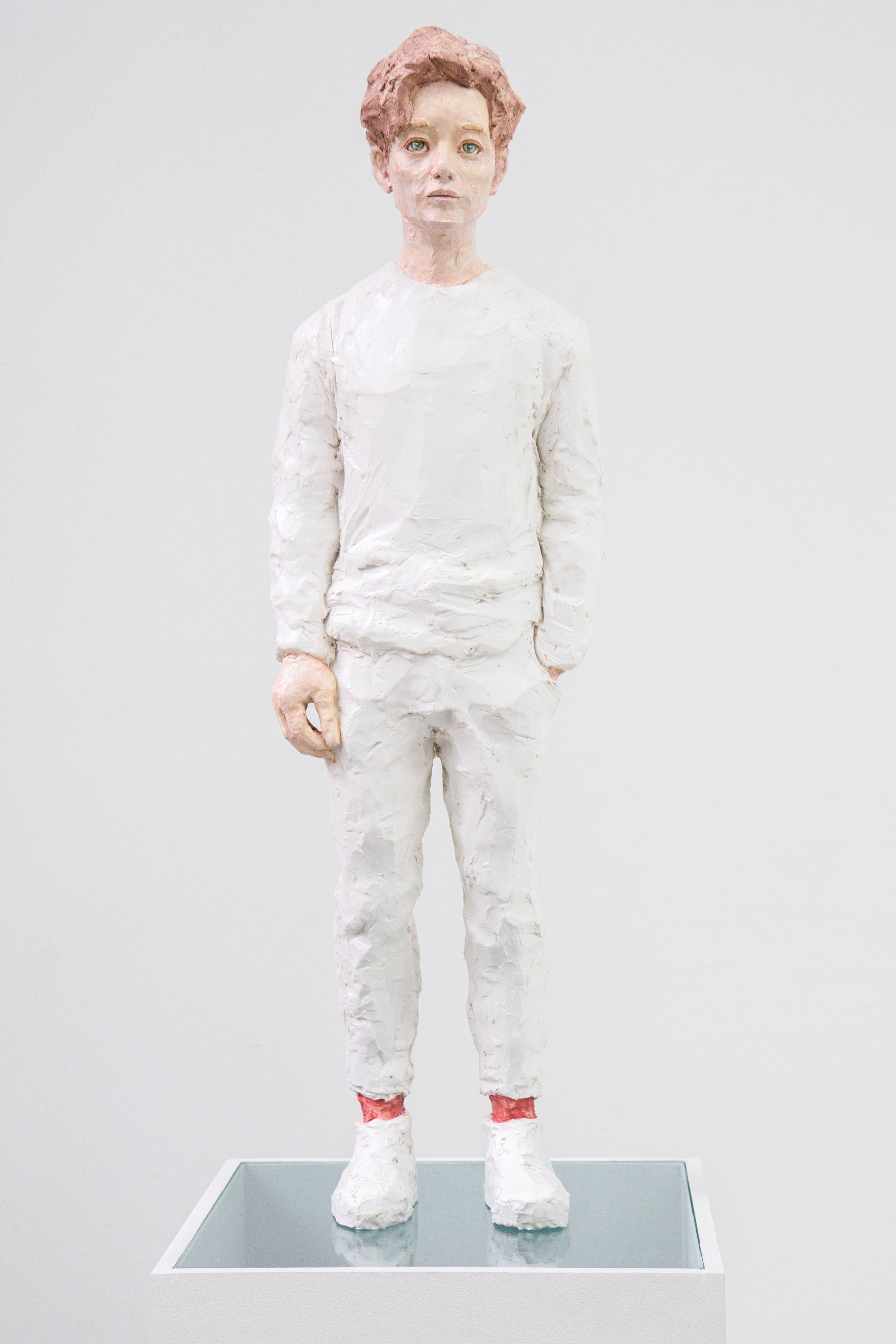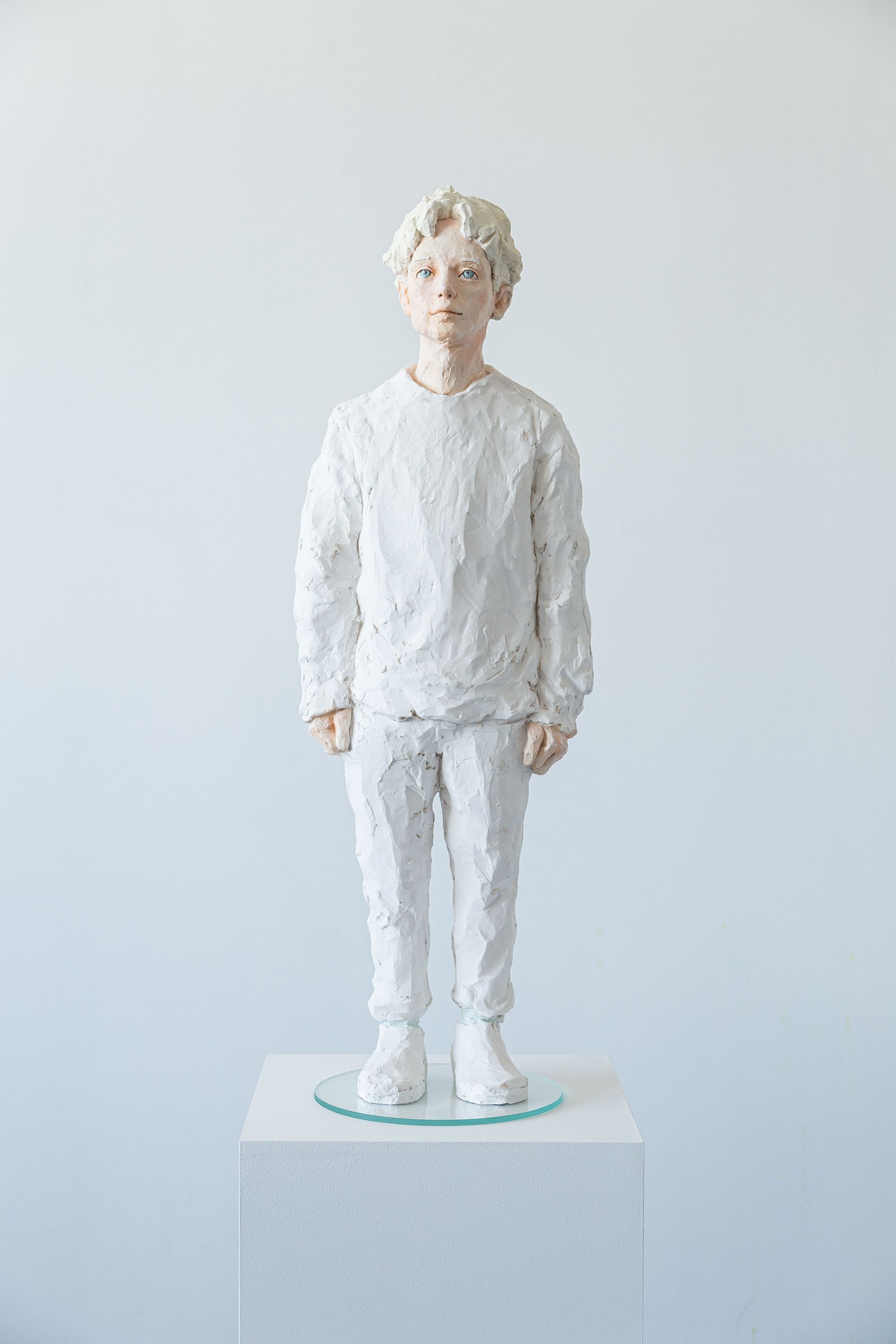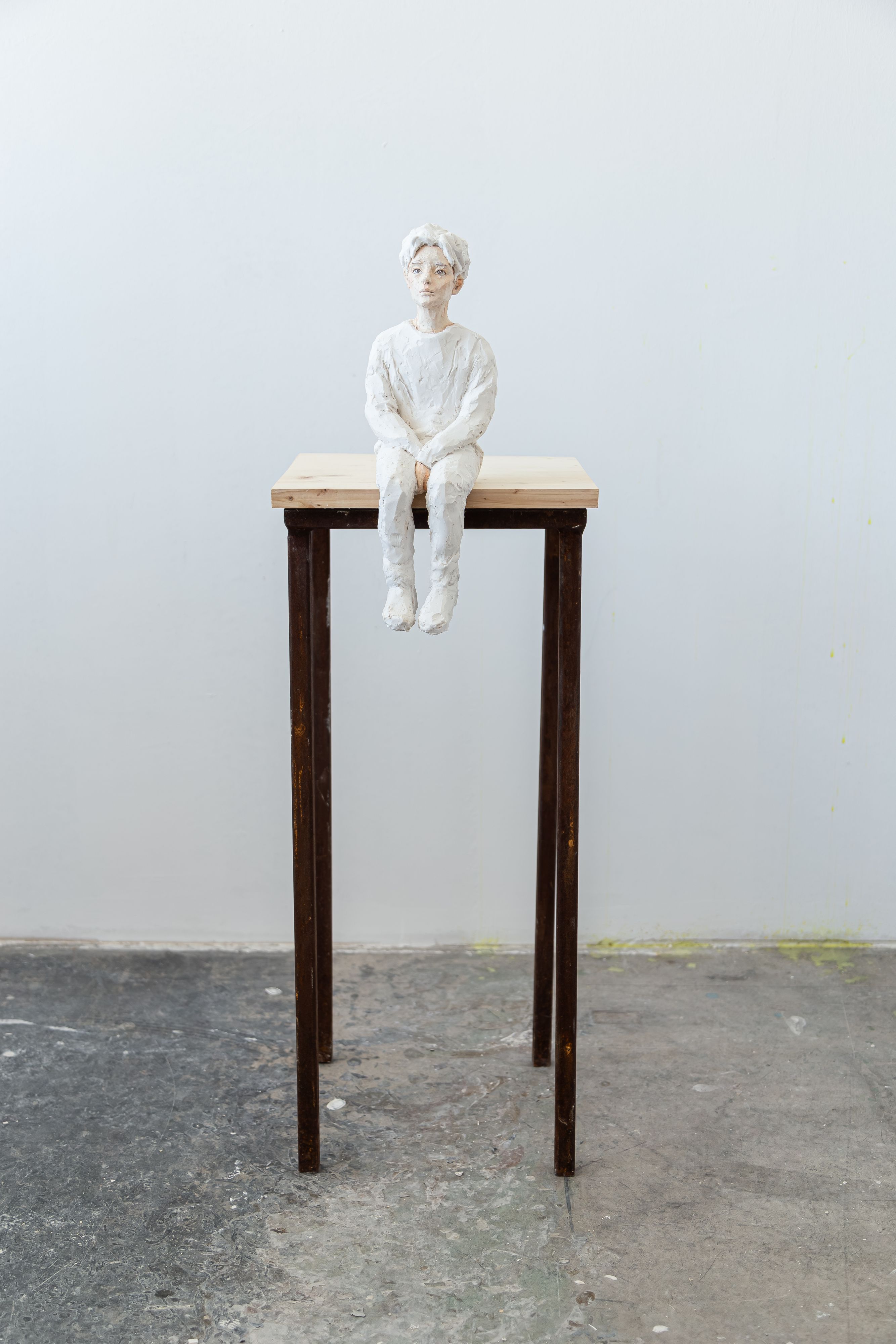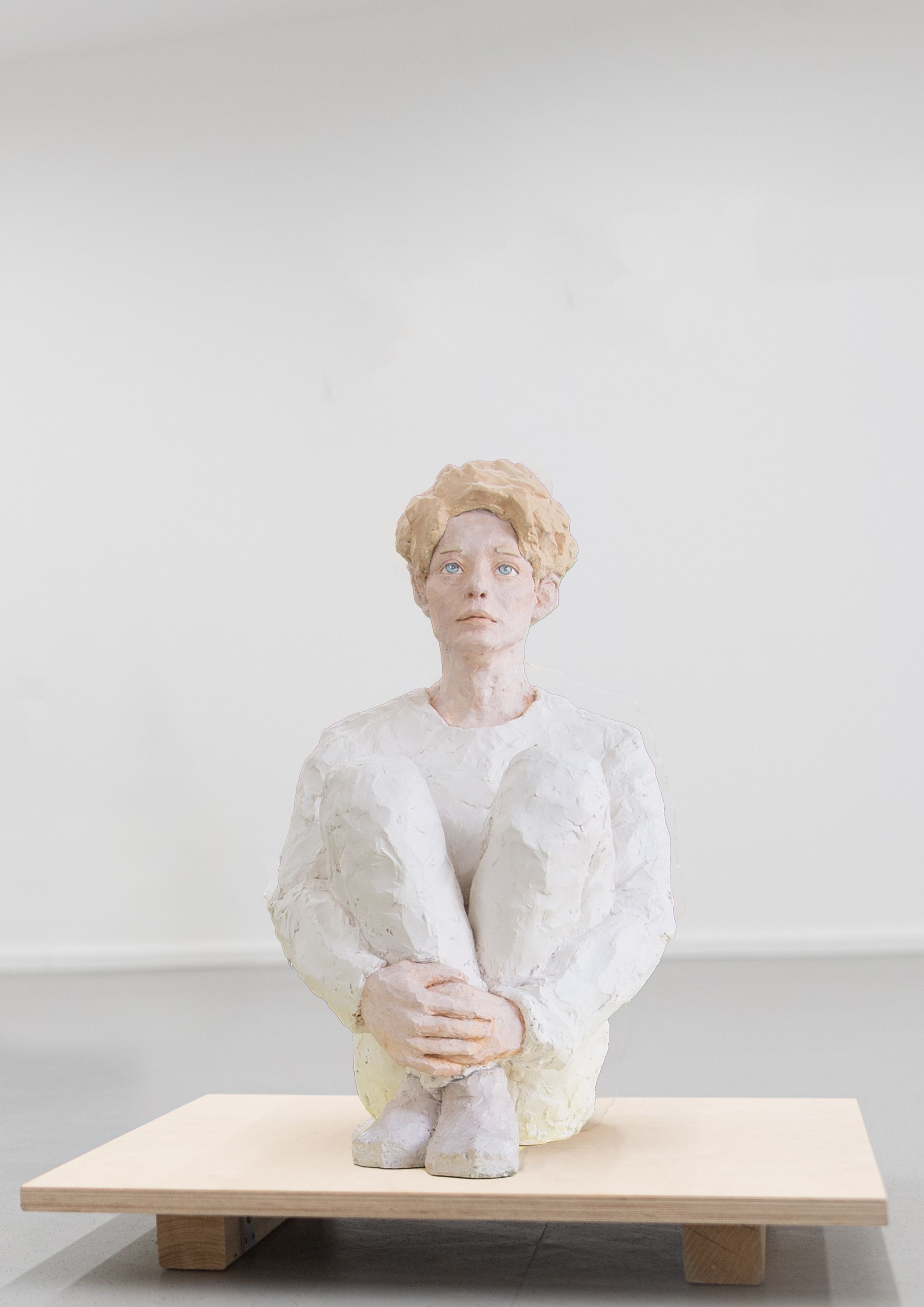 Hirofumi Fujiwara's figures, initially modeled in clay, stand or sit in space, at rest in themselves with a contemplative gaze directed into the indefinite. They seem youthful yet ageless, androgynous and detached from any stereotypes – isolated from this world, yet anchored entirely in the moment.