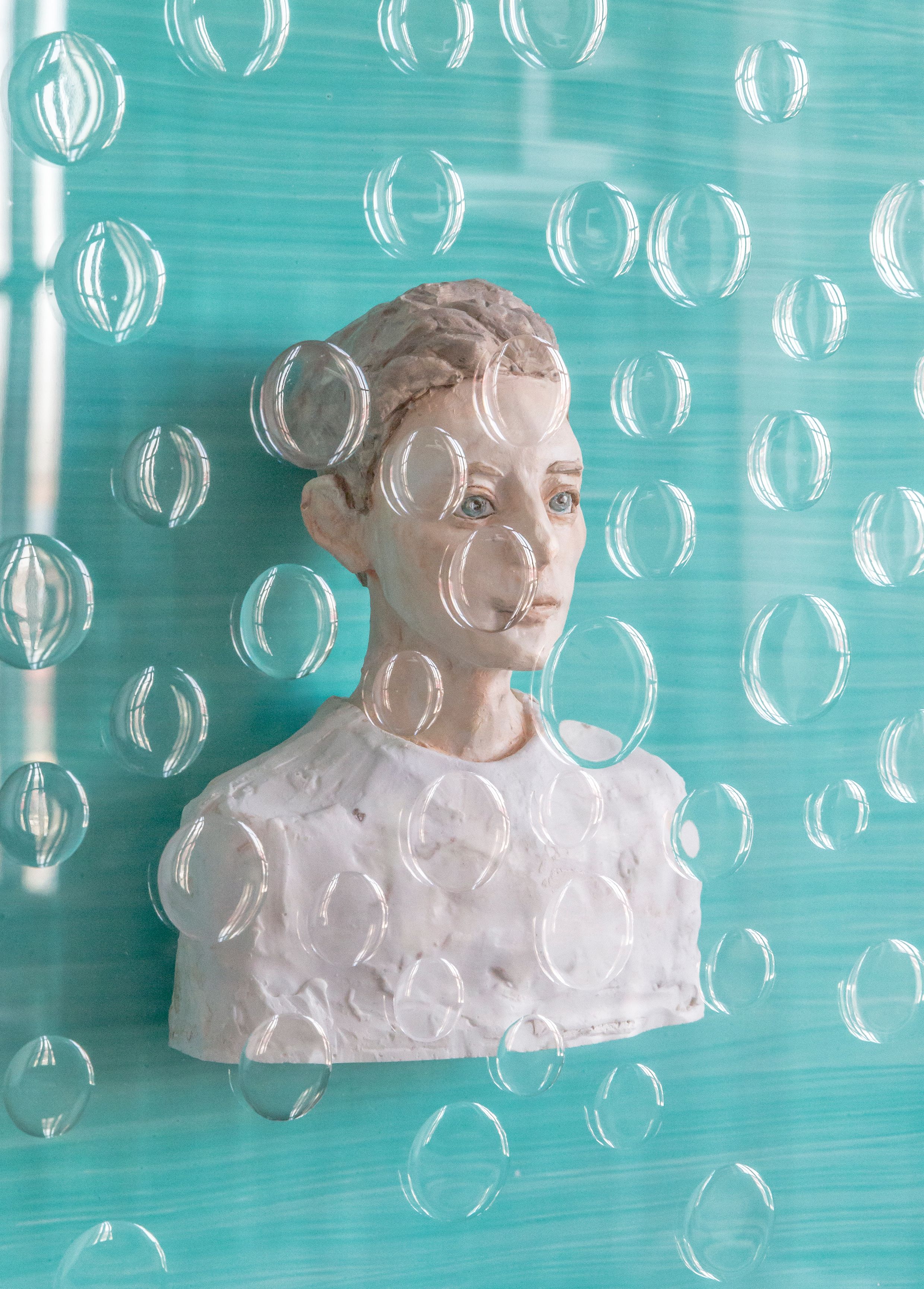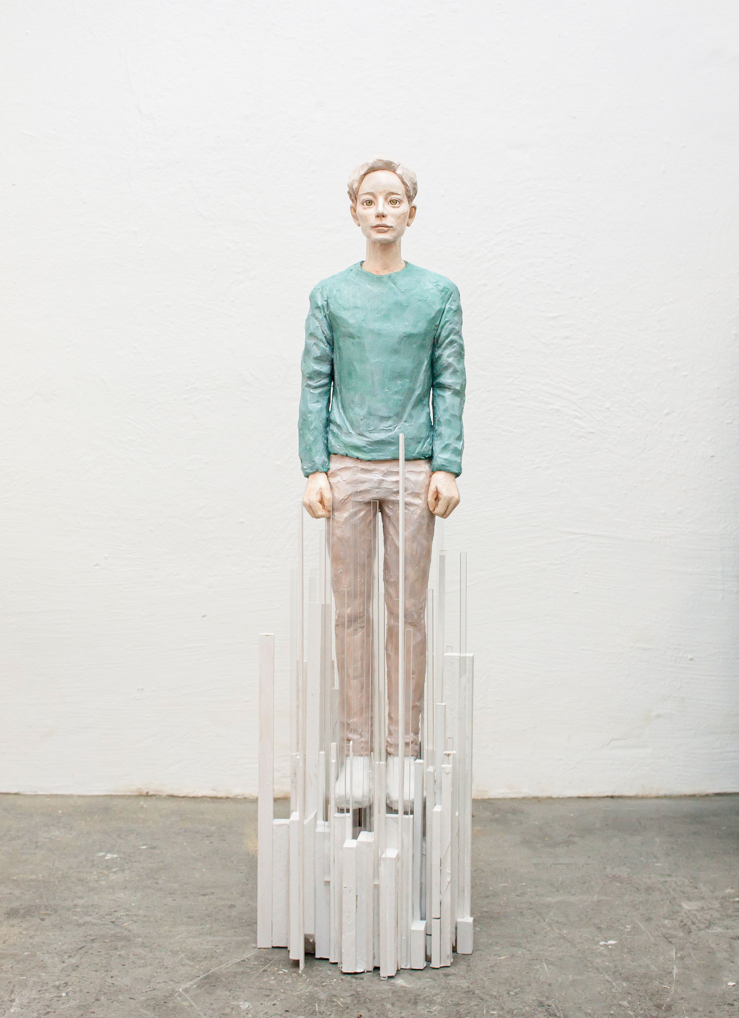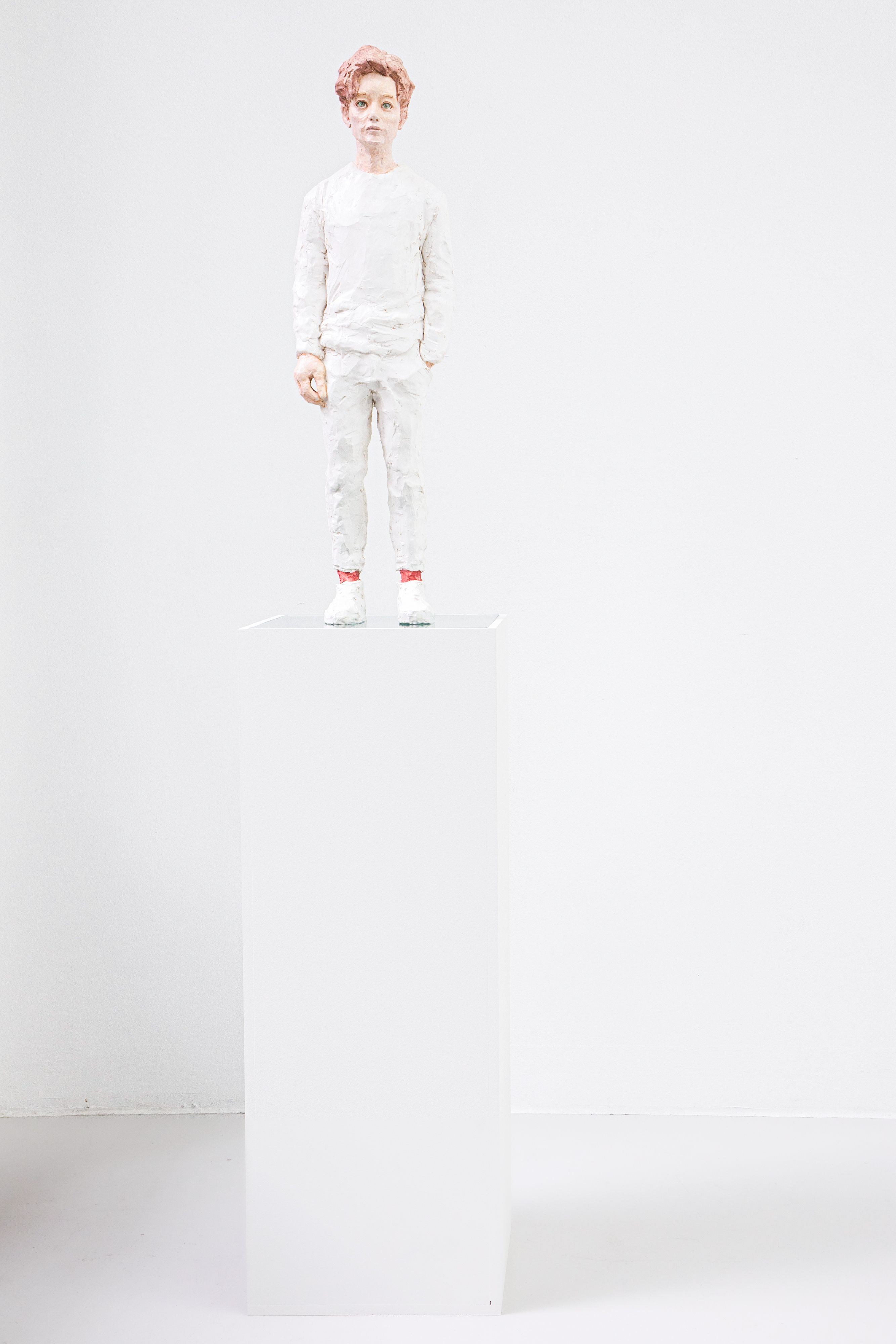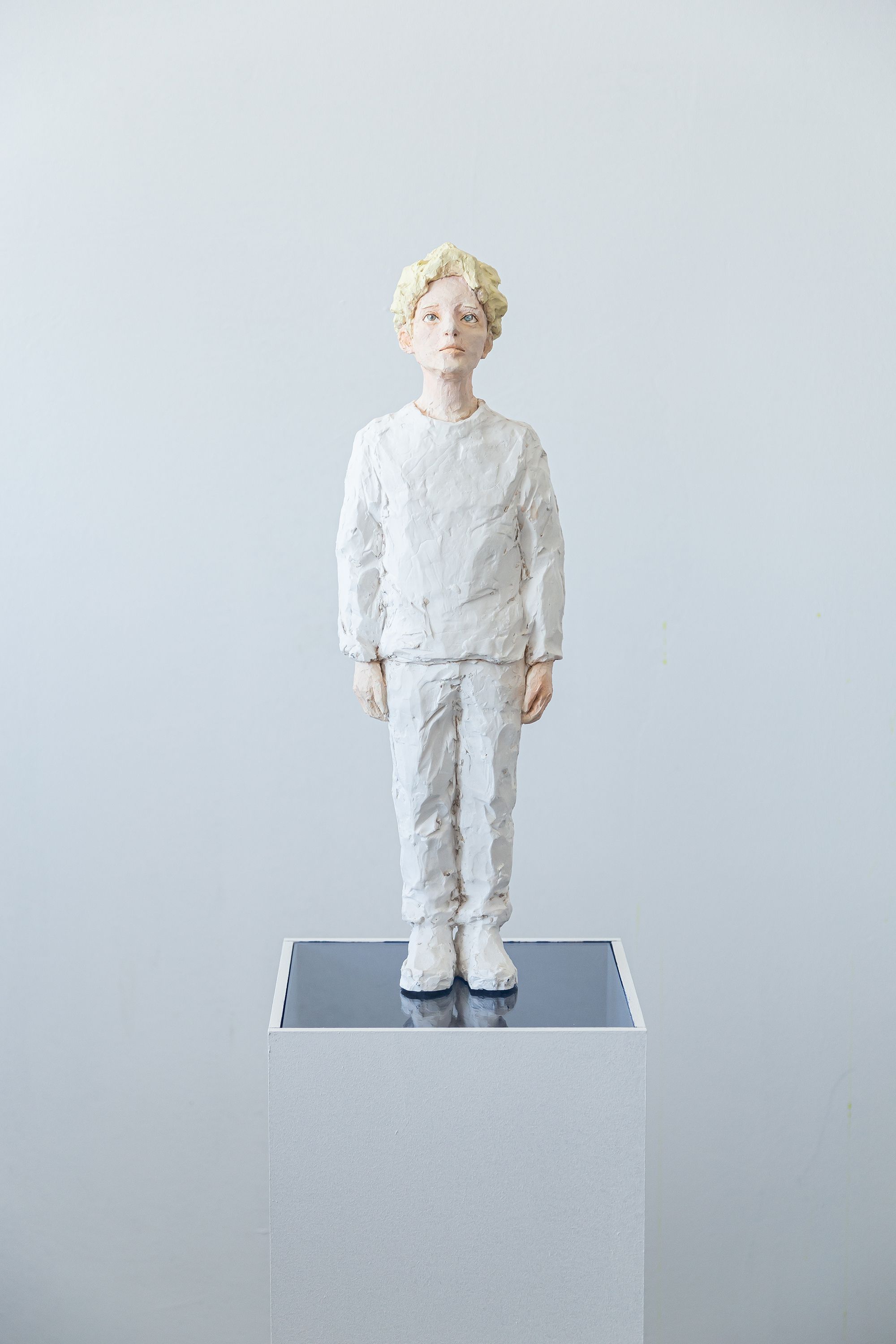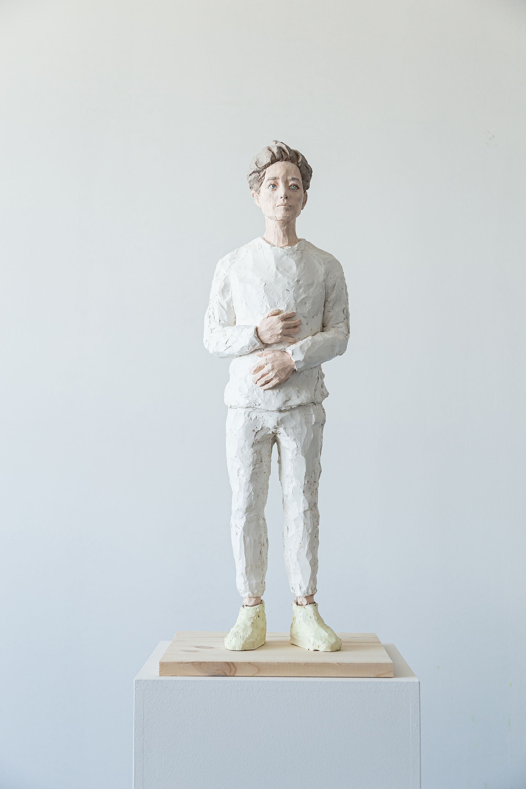 Hirofumi Fujiwara's figures, initially modeled in clay, stand or sit in space, at rest in themselves with a contemplative gaze directed into the indefinite. They seem youthful yet ageless, androgynous and detached from any stereotypes – isolated from this world, yet anchored entirely in the moment.