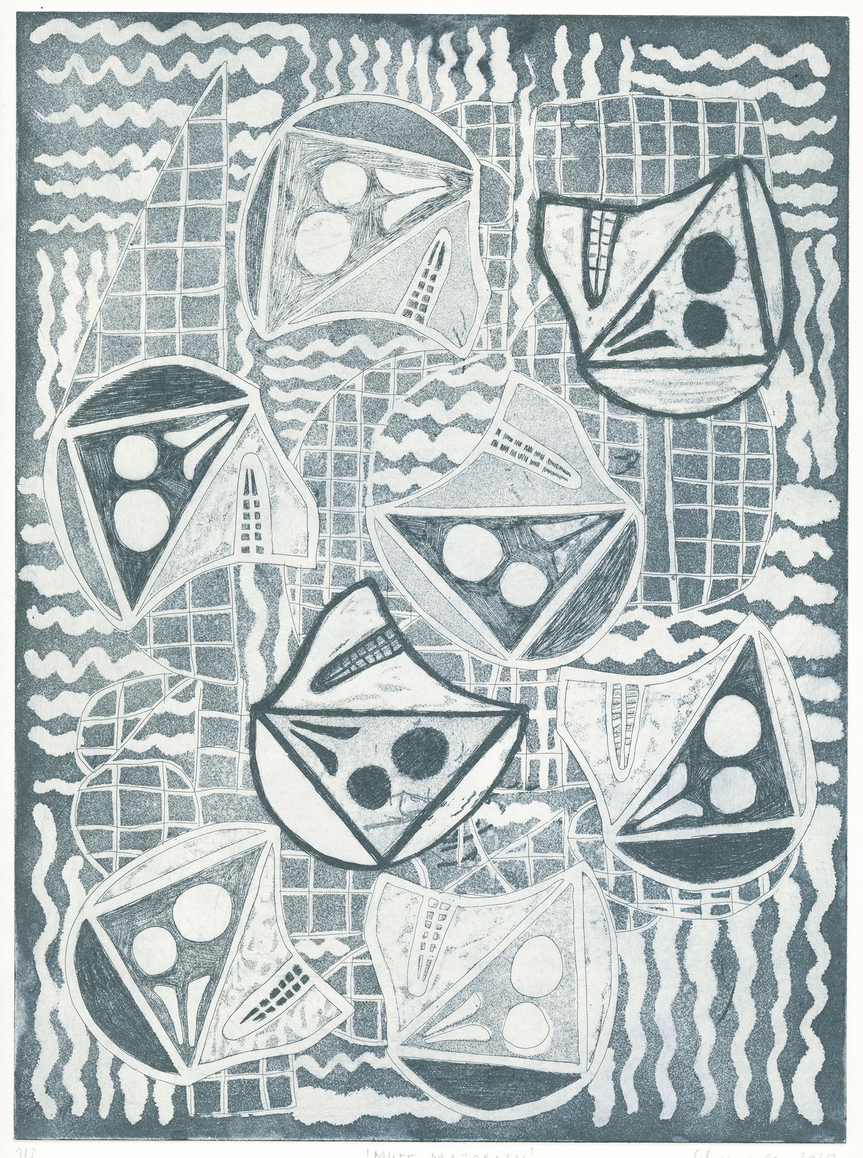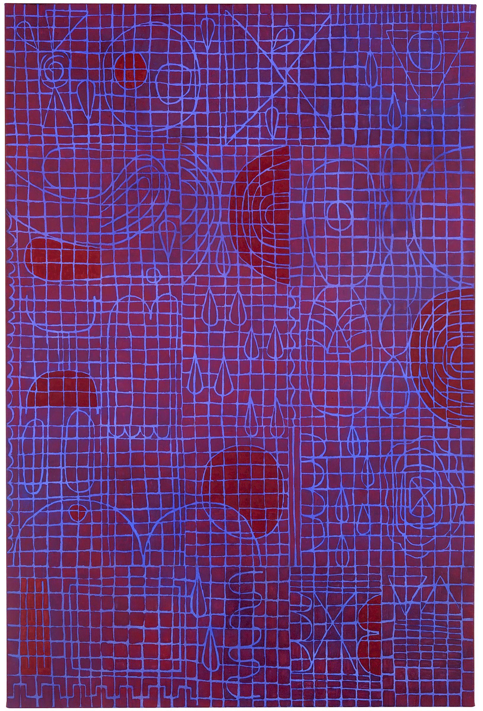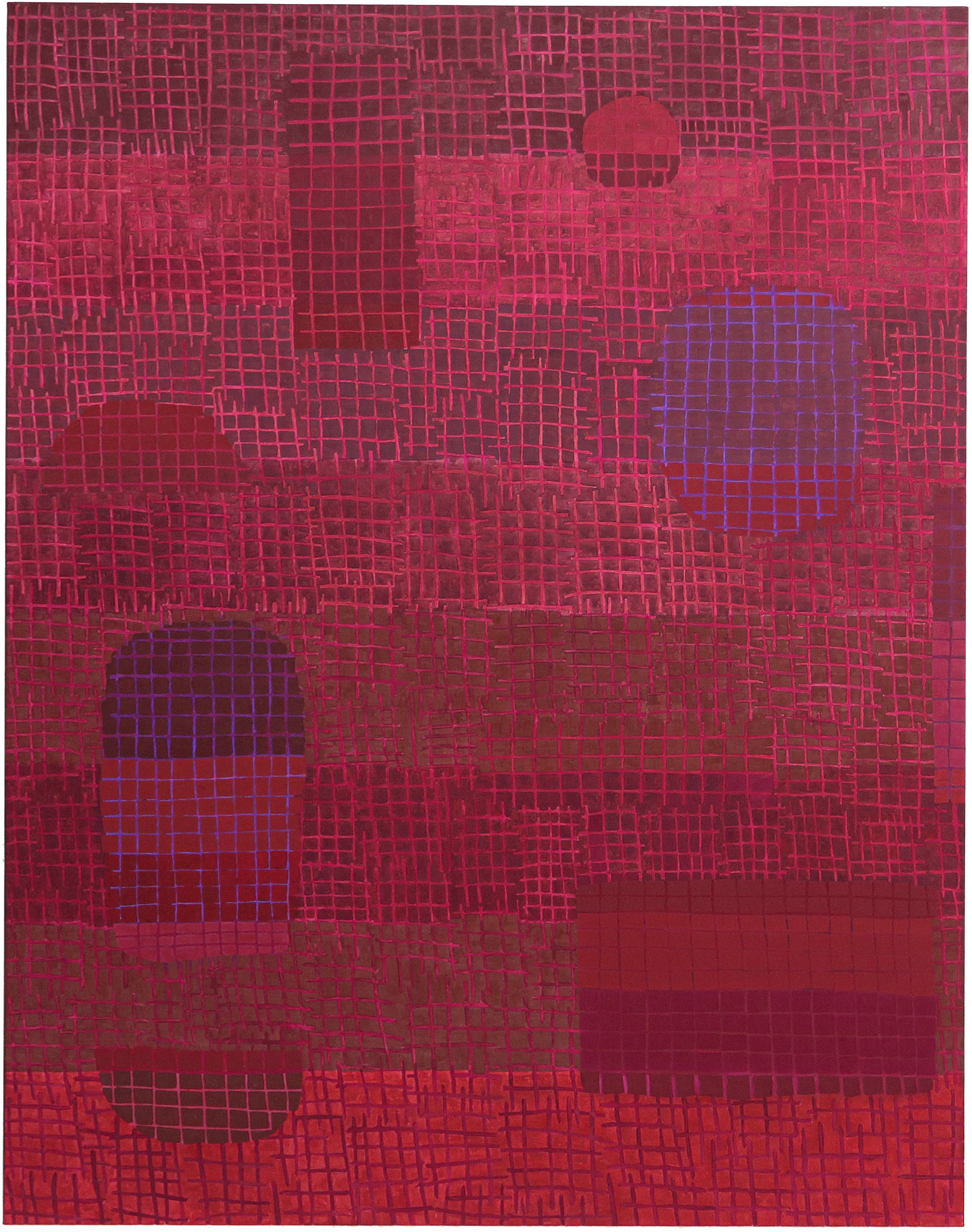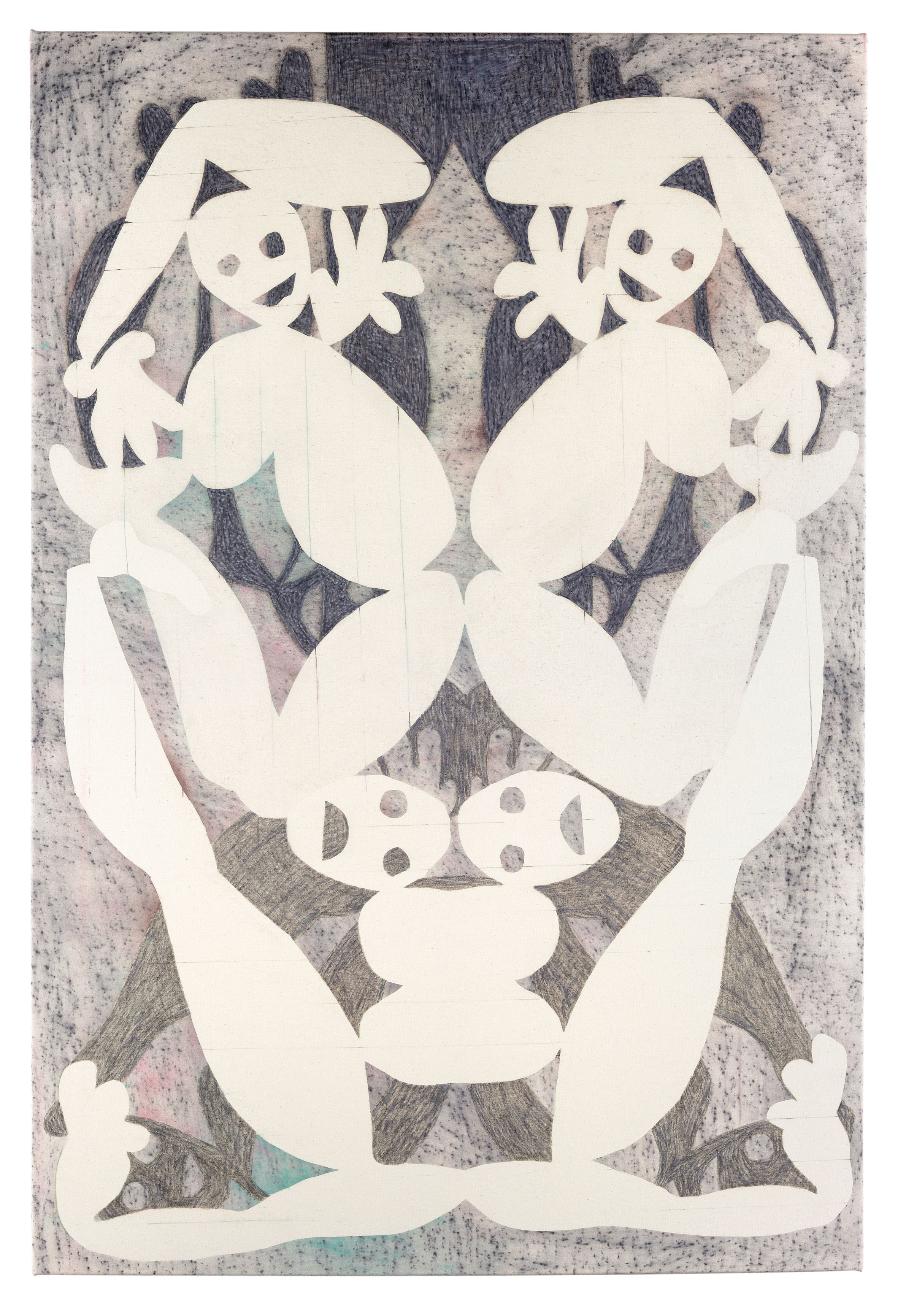 States such as loneliness, fear, grief, love and sexuality and their universal nature preoccupy her just as much as the use of patterns, ornamental arrangements and the ritualistic charging of signs and symbols. The forms and figures depicted by Schumacher can have different effects depending on how they are viewed and are particu- larly multi-layered.