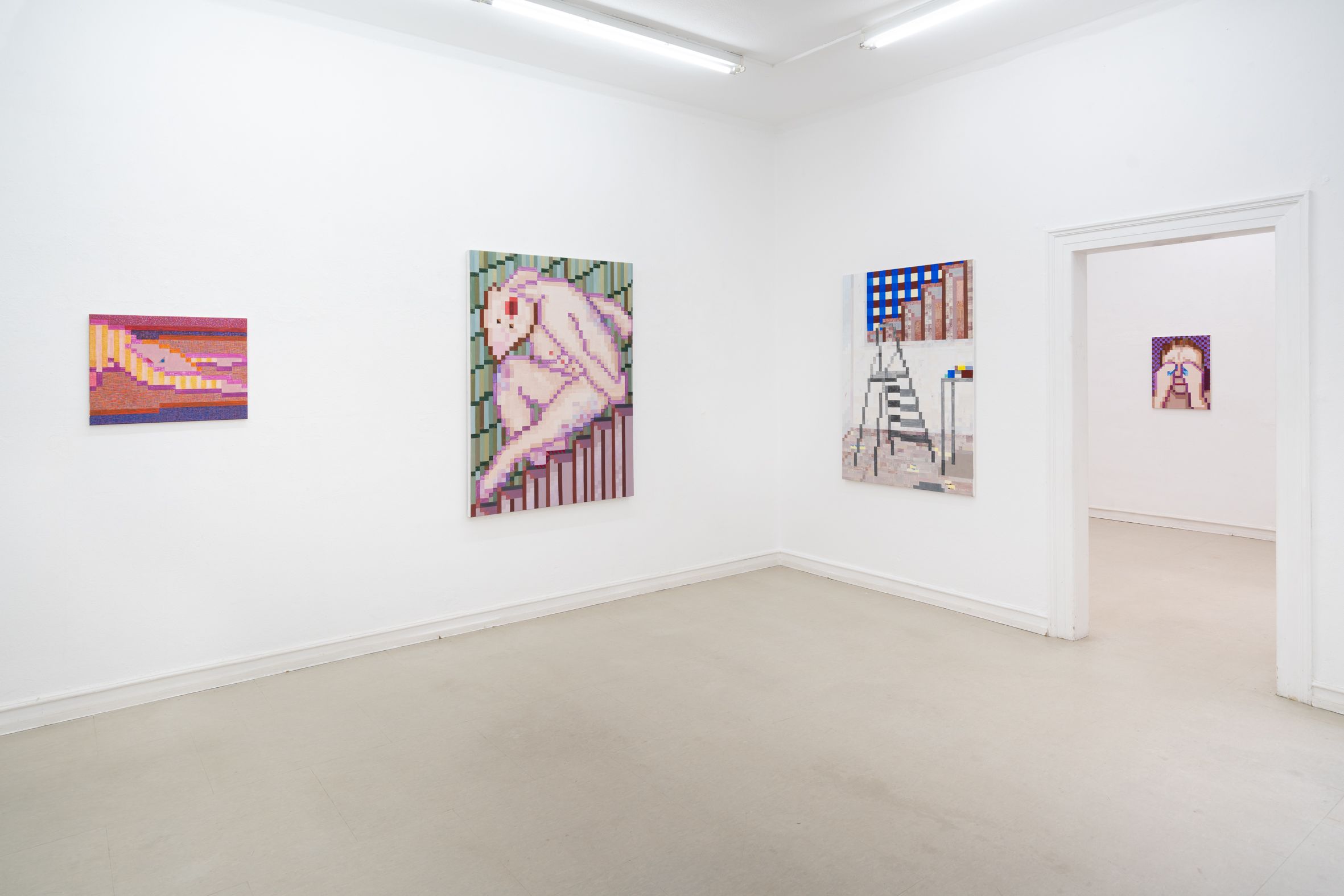 In her paintings, Maria Schumacher deals with the creation of narrative-psychological spaces within which she explores the complexity of relationship structures.