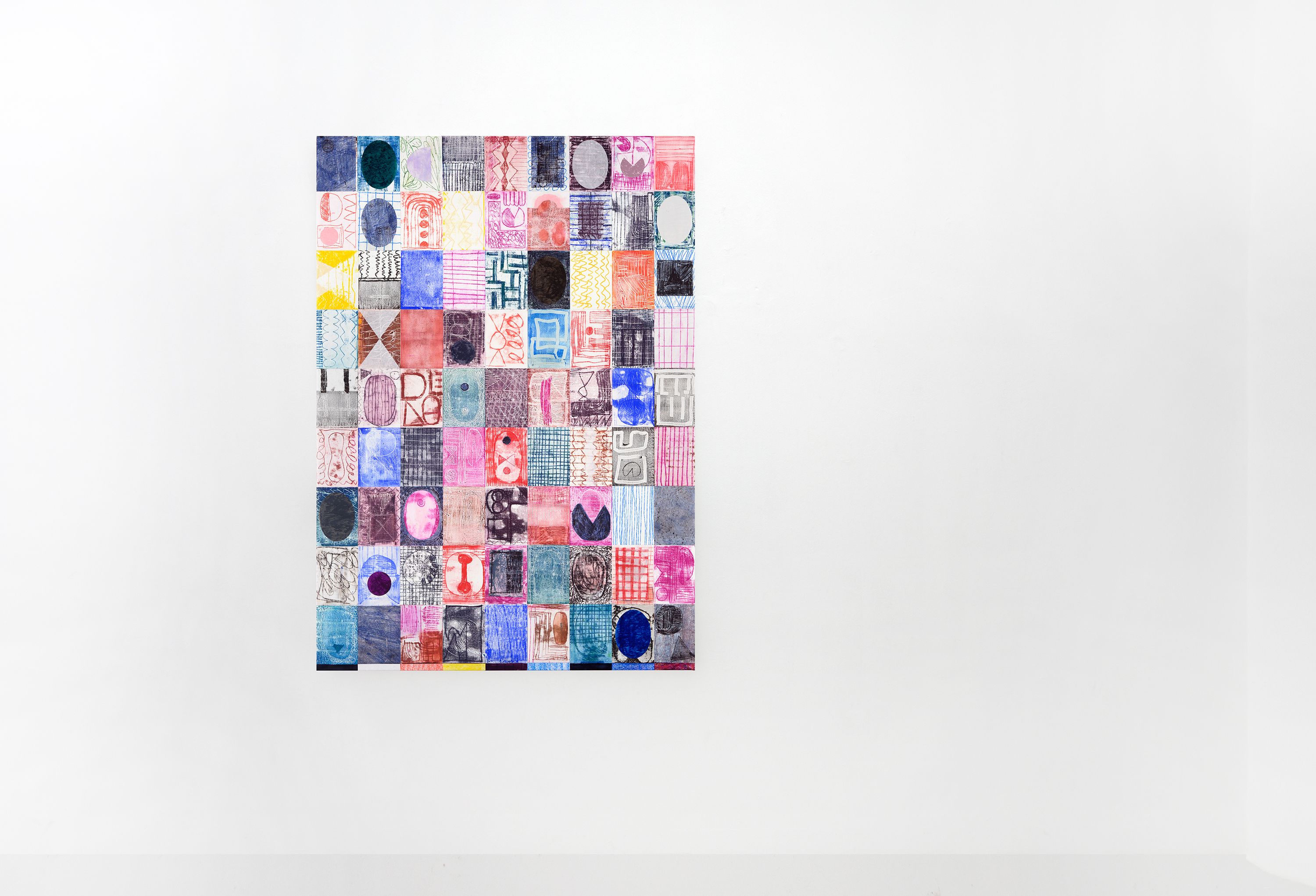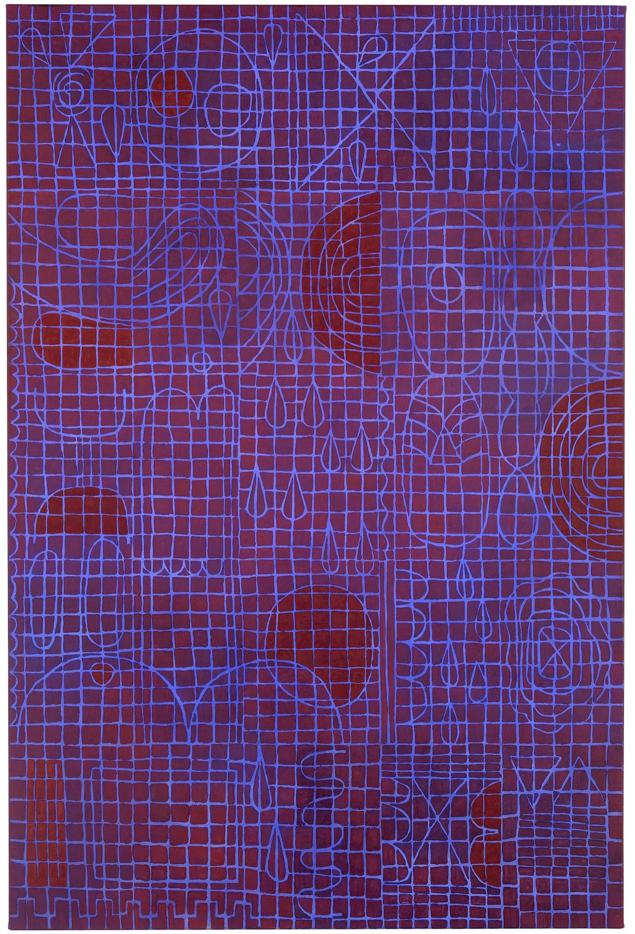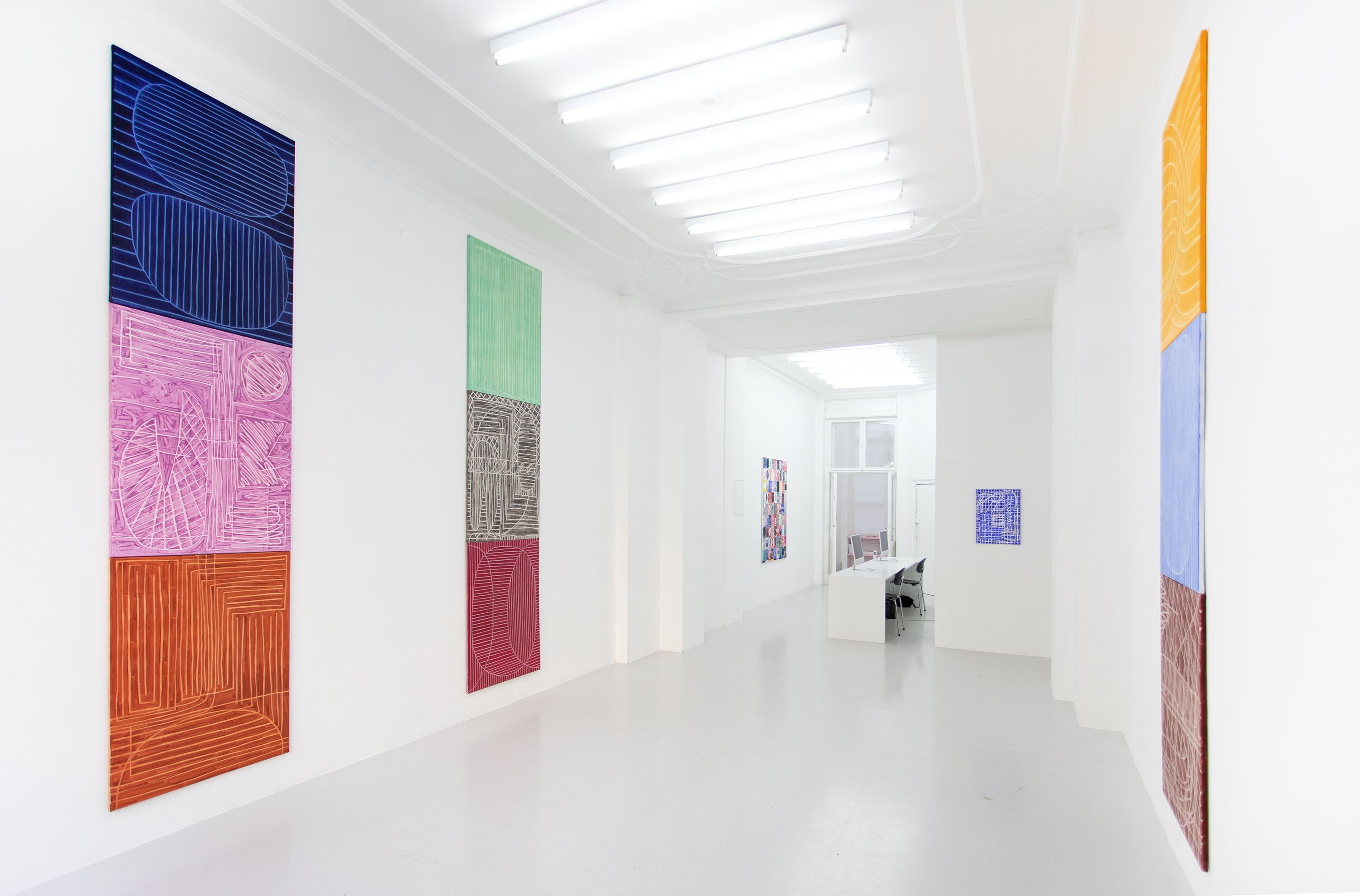 In her paintings, Maria Schumacher deals with the creation of narrative-psychological spaces within which she explores the complexity of relationship structures. States such as loneliness, fear, grief, love and sexuality and their universal nature preoccupy her just as much as the use of patterns, ornamental arrangements and the ritualistic charging of signs and symbols. The forms and figures depicted by Schumacher can have different effects depending on how they are viewed and are particu- larly multi-layered.