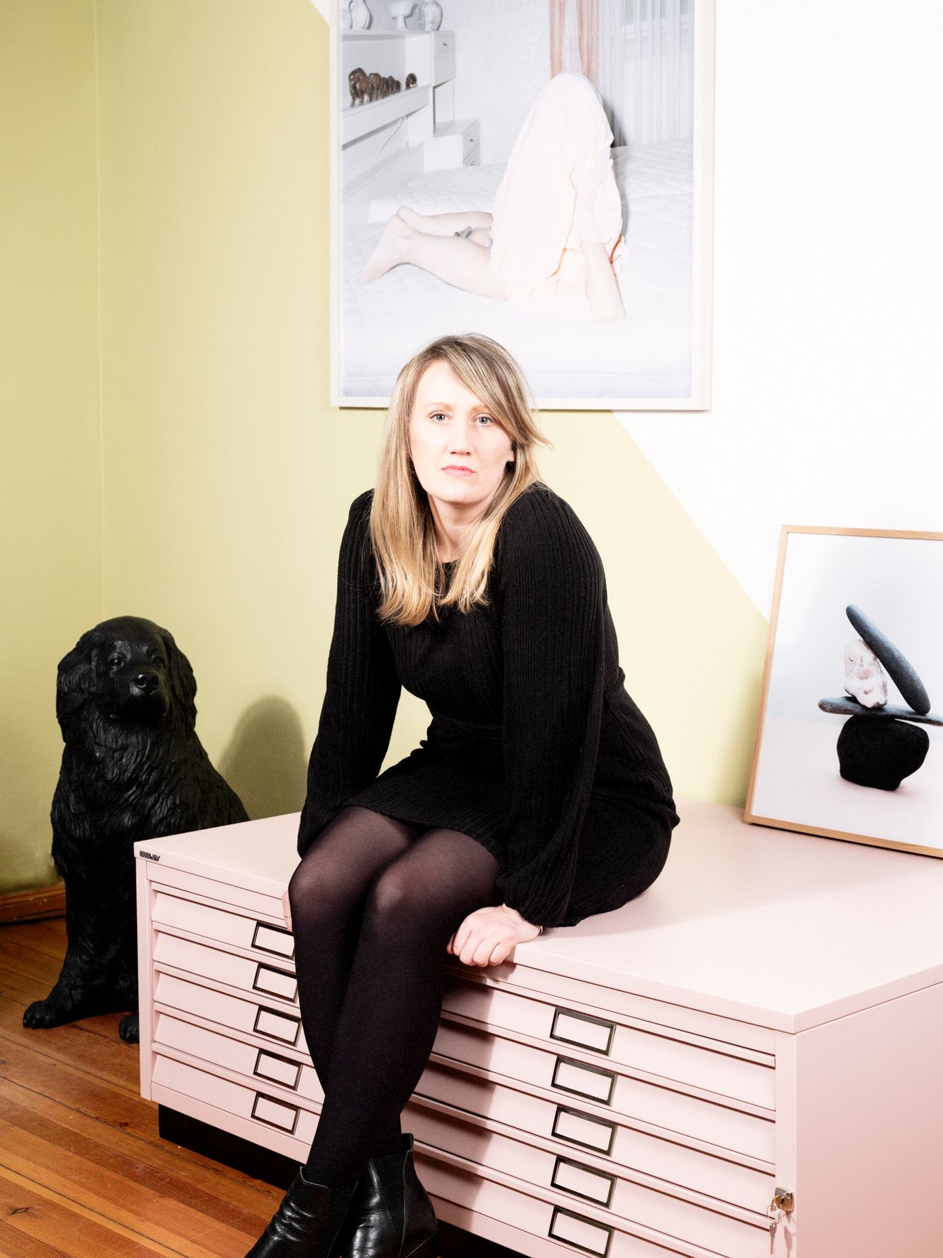 The often absurd or poetic atmosphere of her scenographies conveys the tension of her figures’ biographical experiences, while a whimsical, often humorous, approach plays a crucial role.