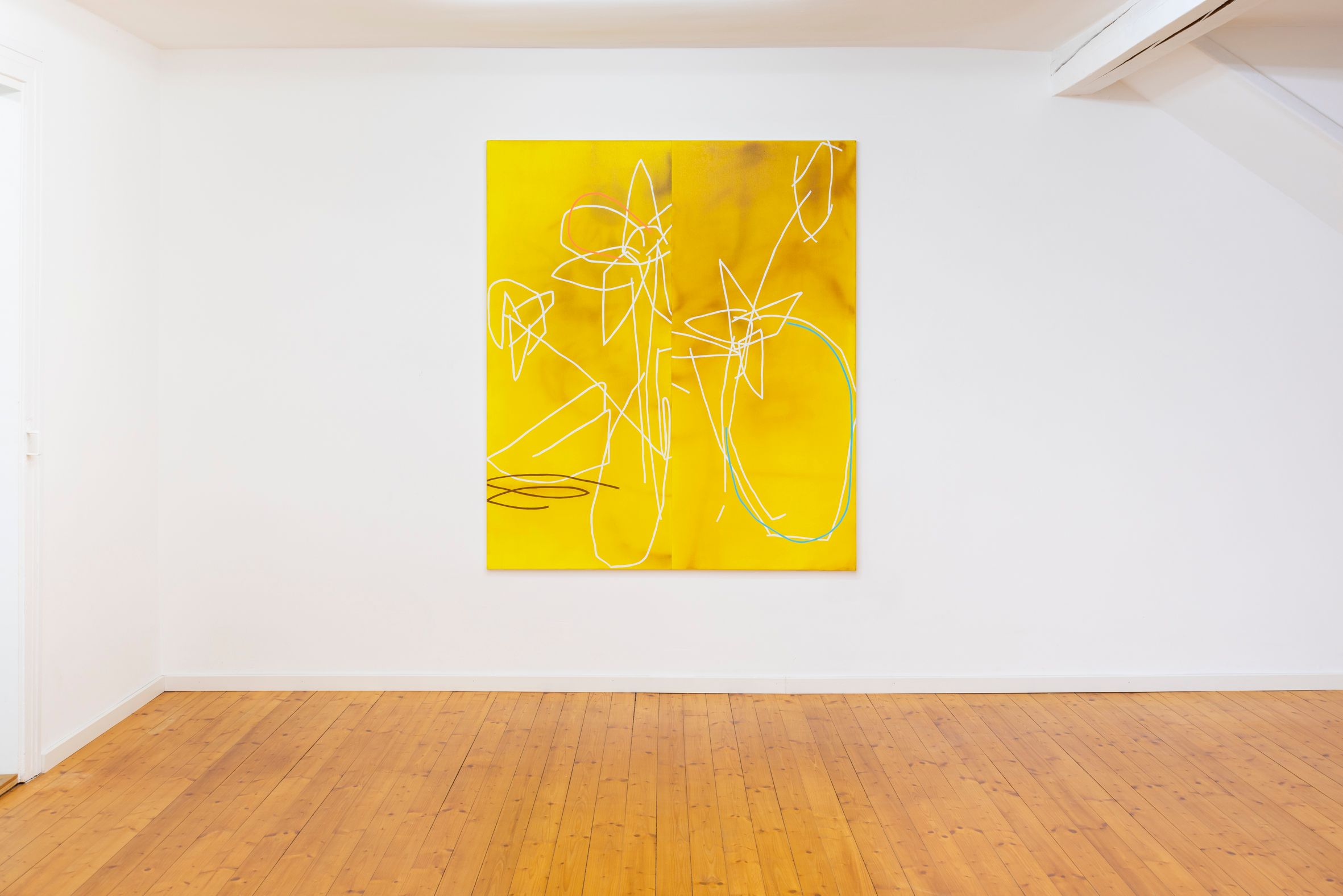 Analogous to his work titles, the title of the exhibition reads like a code of capital letters - H.T.L. can have different meanings at first glance. In the context of the solo show, H.T.L. can be decoded with hold the line and directs our attention to something that stands in space, not yet fully tangible, in a vague state of becoming form.