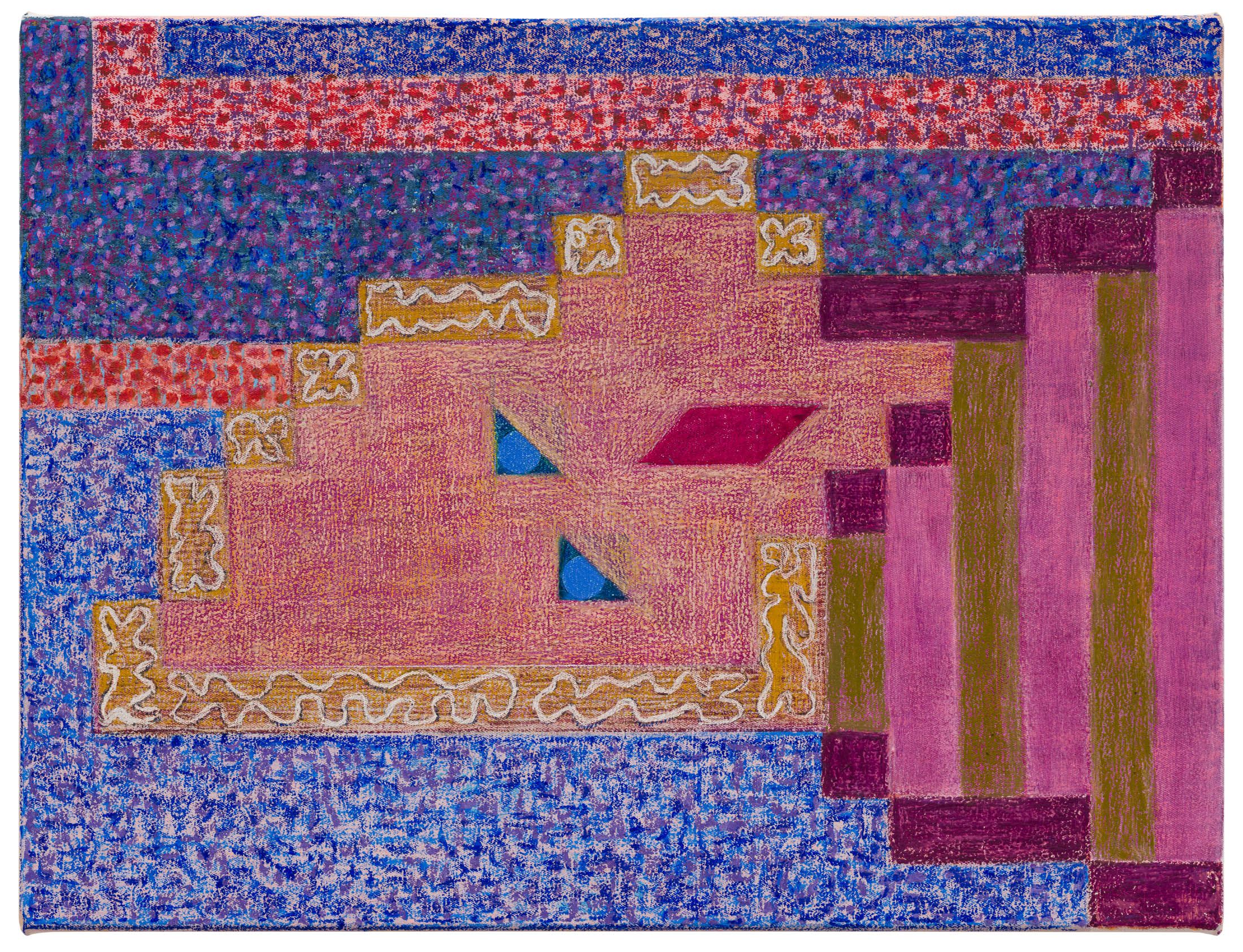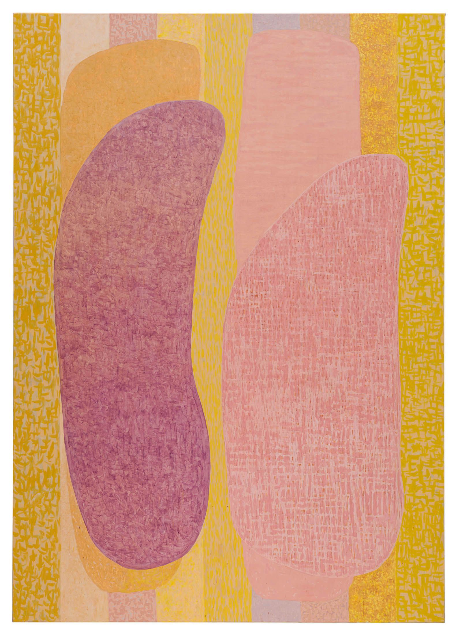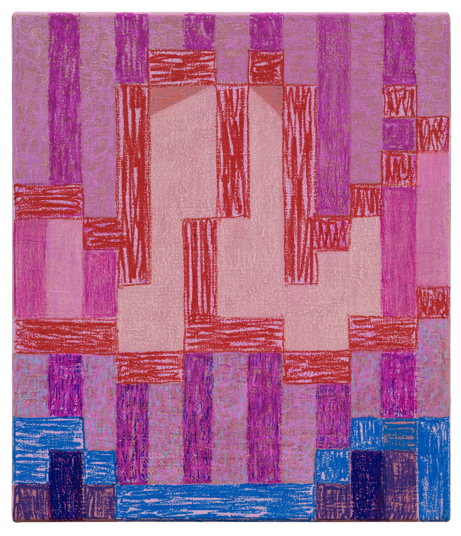In her paintings, the artist deals with the creation of narrative-psychological spaces within which she explores the complexity of relationship structures and, more generally, the fundamental questions of human existence. States such as loneliness, fear, grief, love and sexuality and their universal nature preoccupy her just as much as the use of patterns, ornamental arrangements and the ritualistic charging of signs and symbols. The forms and figures depicted by Schumacher can have different effects depending on how they are viewed and are particularly multi-layered.