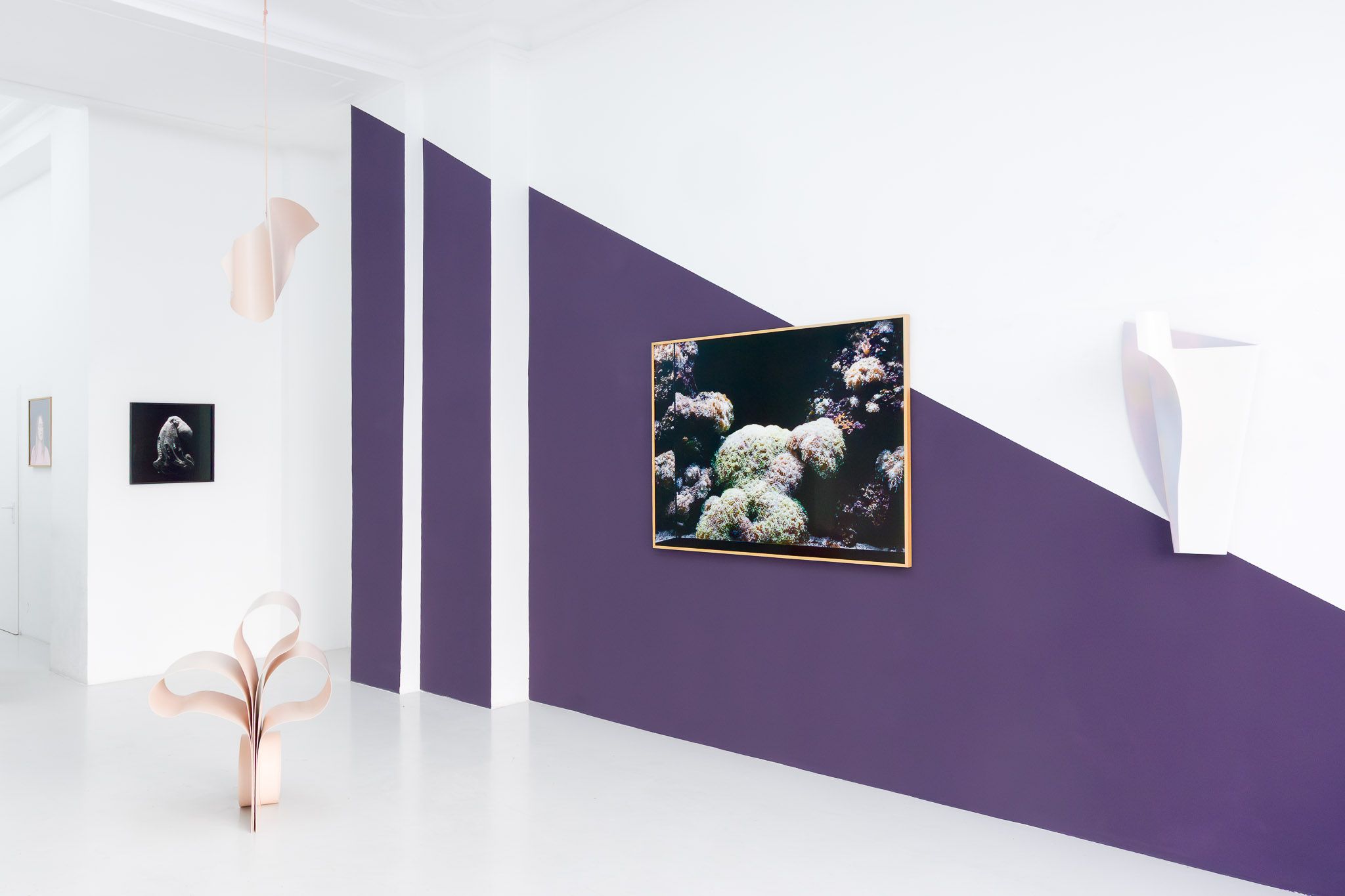 With a keen eye for form and materiality, both artists engage with what lies beneath the surface. In her photographic series Darkness in Which I Swim, Nina Röder explores life beneath the ocean. Although marine creatures such as algae and octopuses are ecologically essential to our existence, they are often perceived as unsettling. Röder highlights their aesthetic qualities by integrating them into performative interactions or illuminating their cognitive abilities.
