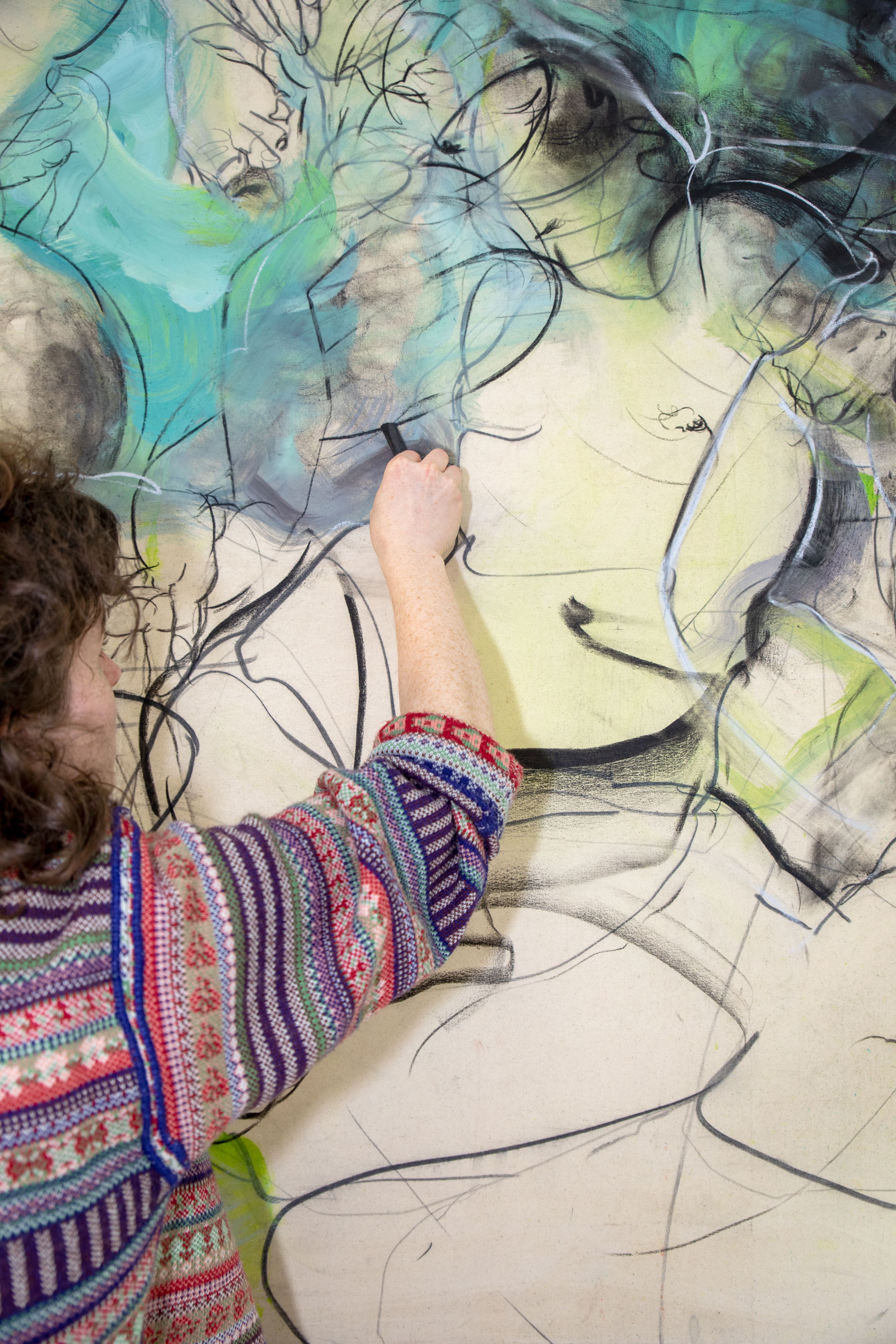 Ellen Antico’s work is inspired by Renaissance paintings and the work of Rubens; her motives primarily celebrate the female body in all shapes and sizes: Large fleshy figures, entwined with one another, confident with their body and sexuality.