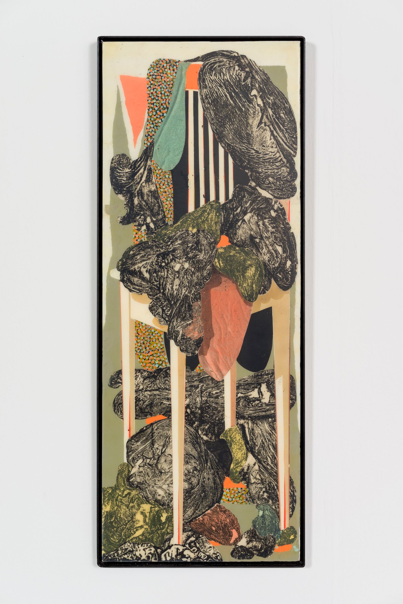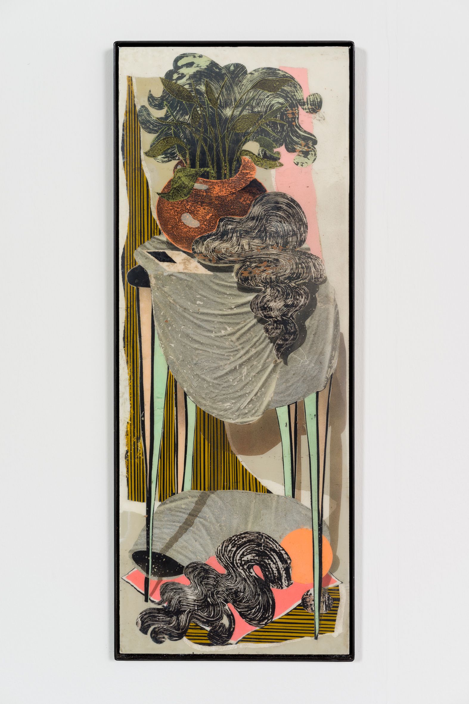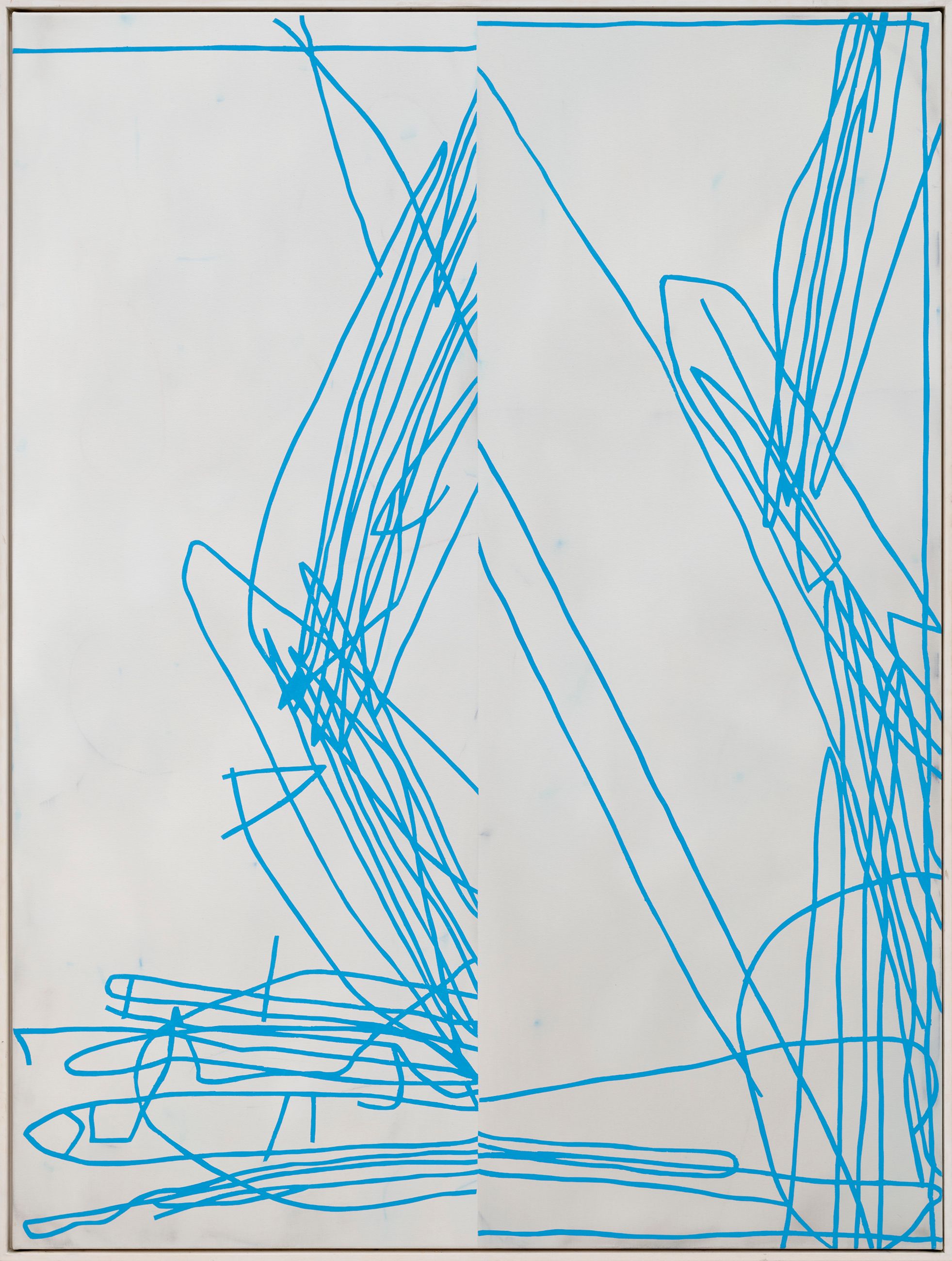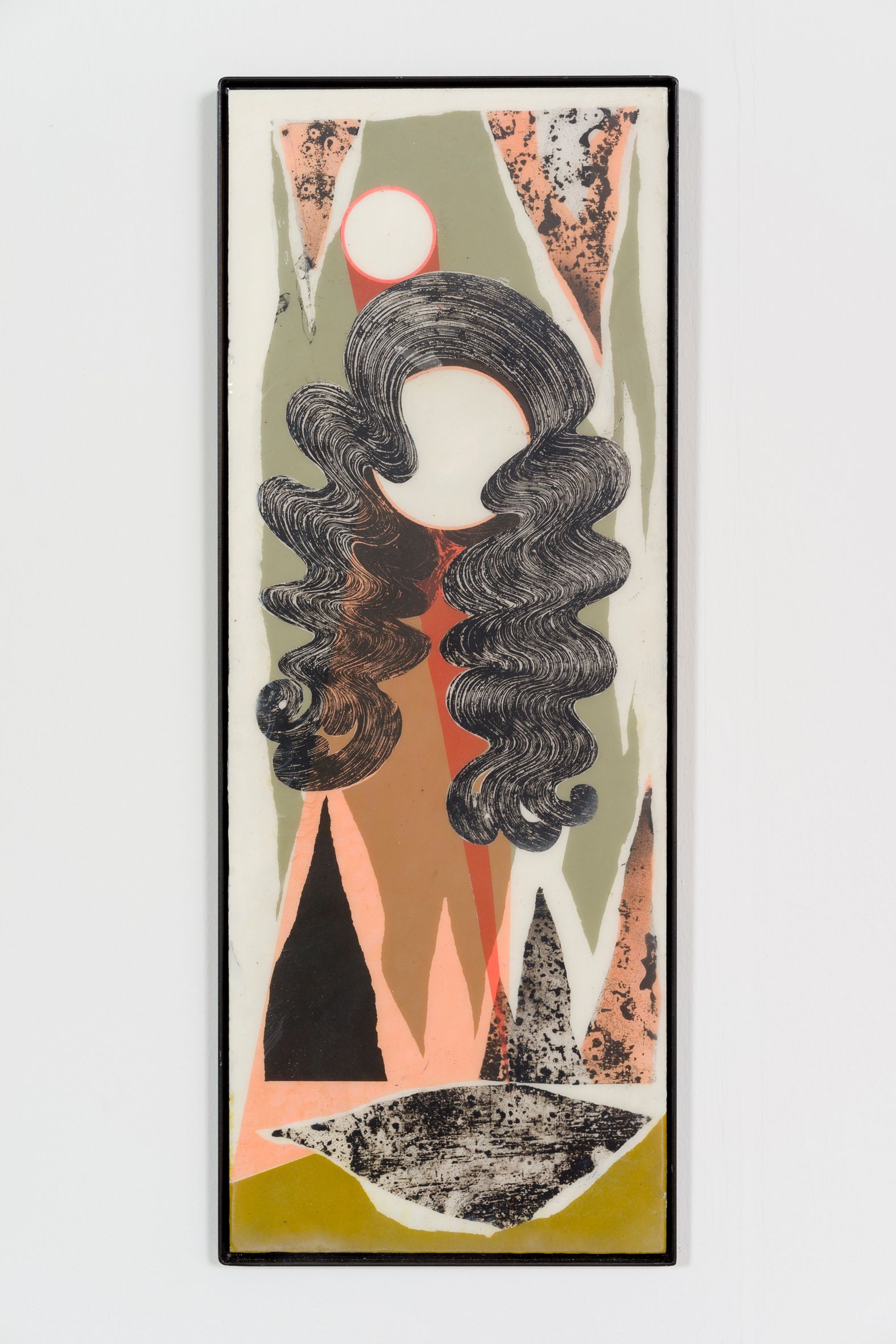 Enrico Bach's compositions are characterized by the division of the pictorial space into two halves. A picture-within-a-picture principle in which each side stands on its own and yet corresponds with the other half. The layered areas of color and pattern thus create the illusion of a more or less deep space. At the same time, Bach leaves behind the conventional compositional pattern of a centered motif: the picture's edge, ground and interfaces become depth-giving design levels.